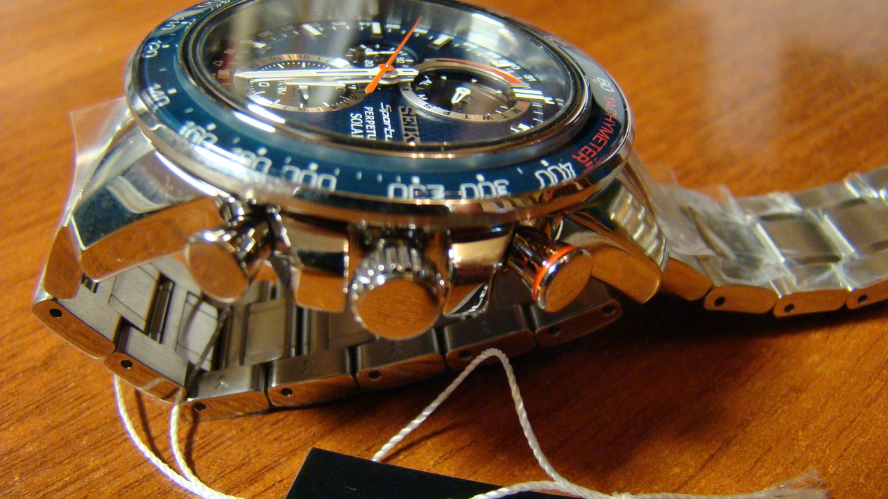 Аккумулятор часов заряжается от солнечного света. Калибр V198. Запас хода около 6-ти месяцев. Хронограф до 24 часов с шагом 1/5 сек. Функция Split. Полный календарь до 2100 года. Тахиметрическая шкала. Индикатор запаса хода. Будильник. Сапфировое стекло с антибликовым покрытием. Стрелки и маркеры с покрытием LumiBrite. Часы выполнены из нержавеющей стали. Завинчивающаяся заводная головка. Диаметр корпуса 45 мм.