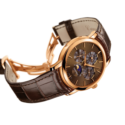 В знаменитой Collection Privee Cartier Paris легендарного французского ювелирного и часового дома собраны только лучшие часы в истории Cartier. В этом году коллекция пополнилась замечательной моделью Rotonde de Cartier A Grande Complication. Это турбийон, вечный календарь и однокнопочный хронограф с запасом хода целых 8 дней. В собрание великих родственников Rotonde явилась в платиновом корпусе диаметром 43,5 мм с сапфировой задней крышкой и фирменной заводной головкой, инкрустированной сапфировым кабошоном. Очень необычно, на отметке «9 часов» разместился турбийон с мостом в форме буквы С (Cartier). Указатель дней недели интегрирован в индикатор запаса хода. Обратите внимание на весьма необычный «полосатый» индикатор лет, который расположился между стрелочными указателями месяцев и дней на отметке «1 час». Когда виднеются все 4 полоски - это означает, что наступил високосный год; одна полоска символизирует, что идет 1-й год после високосного. Всего будет изготовлено 10 экземпляров этих коллекционных часов. Заказать их можно в бутике Cartier в Столешниковом переулке, где вам и сообщат цену модели и сроки ее изготовления.