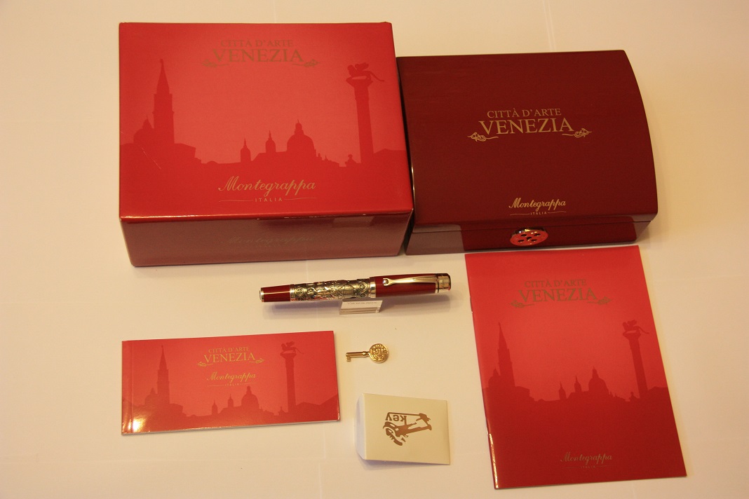 Лимитированная коллекция 'Венеция - город искусства' посвящена городу в лагуне, который также расположен недалеко от Бассано-Дель-Граппа, города в котором в 1912 году был создан величайший бренд Montegrappa. В связи с этой датой коллекция пишущих инструментов состоит из 1912 экземпляров: 1000 перьевых ручек и 880 роллеров с использованием серебра и лака, а также 23 перьевых ручек с использованием лака и золота 18 карат. Старинная техника низкорельефной гравировки использована для того, чтобы изобразить памятник Святому Марку на корпусе пишущего инструмента. Также на корпусе можно заметить еще несколько значимых деталей: это четыре великолепные лошади, которые стоят над входом в собор Сан Марко в Венеции, а также барельеф на фасаде дворца Дожей. На торце колпачка расположен лев, древний символ площади Сан Марко. Колпачок и корпус покрыты драгоценным красным лаком, этот цвет выражает богатство и силу одной из самых великих морских республик. Шкатулка красно-венецианского цвета напоминает сундук с сокровищами, которые долгие века хранили тайны узких улиц Венеции.