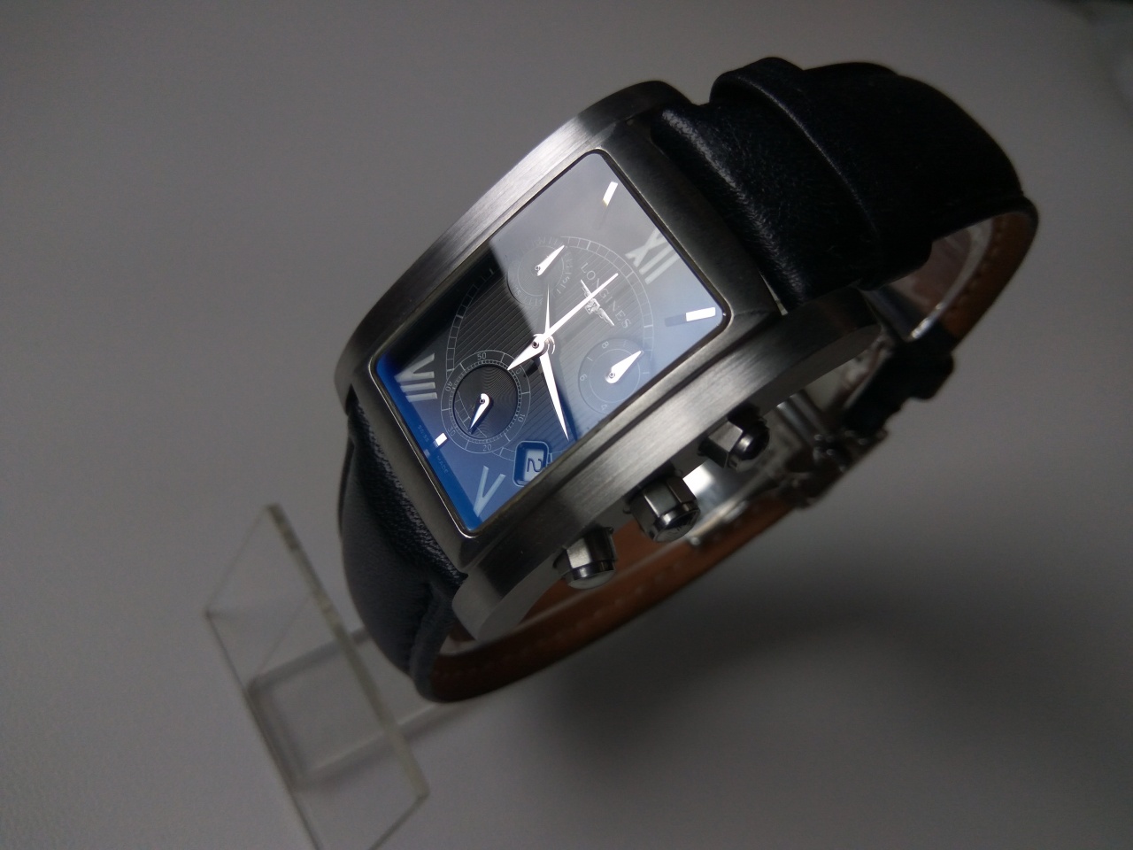 Хронограф: центральная секундная стрелка (шаг 1 сек.) дополнительный накопитель (шаг 1/10сек.) и накопитель с 30 минутным счетчиком.