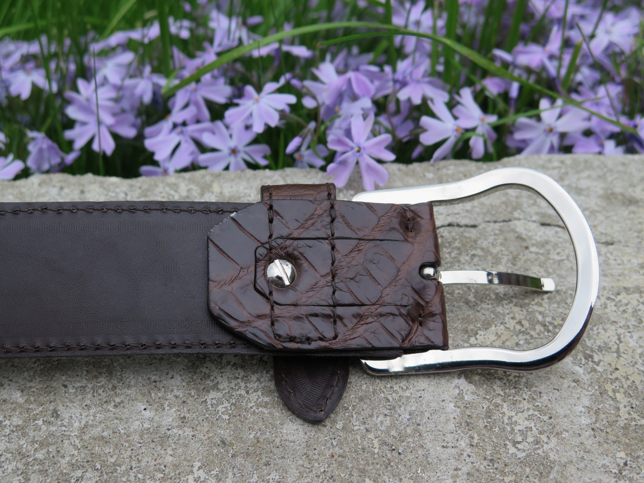 РЕМЕНЬ ИЗ КОЖИ НИЛЬСКОГО КРОКОДИЛА. ЦВЕТ КОРИЧНЕВЫЙ. ИТАЛИЯ