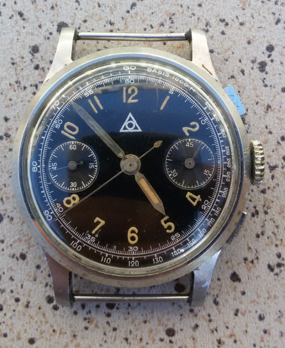 Старый наручный хронограф с черным цифером (ВОВ?)