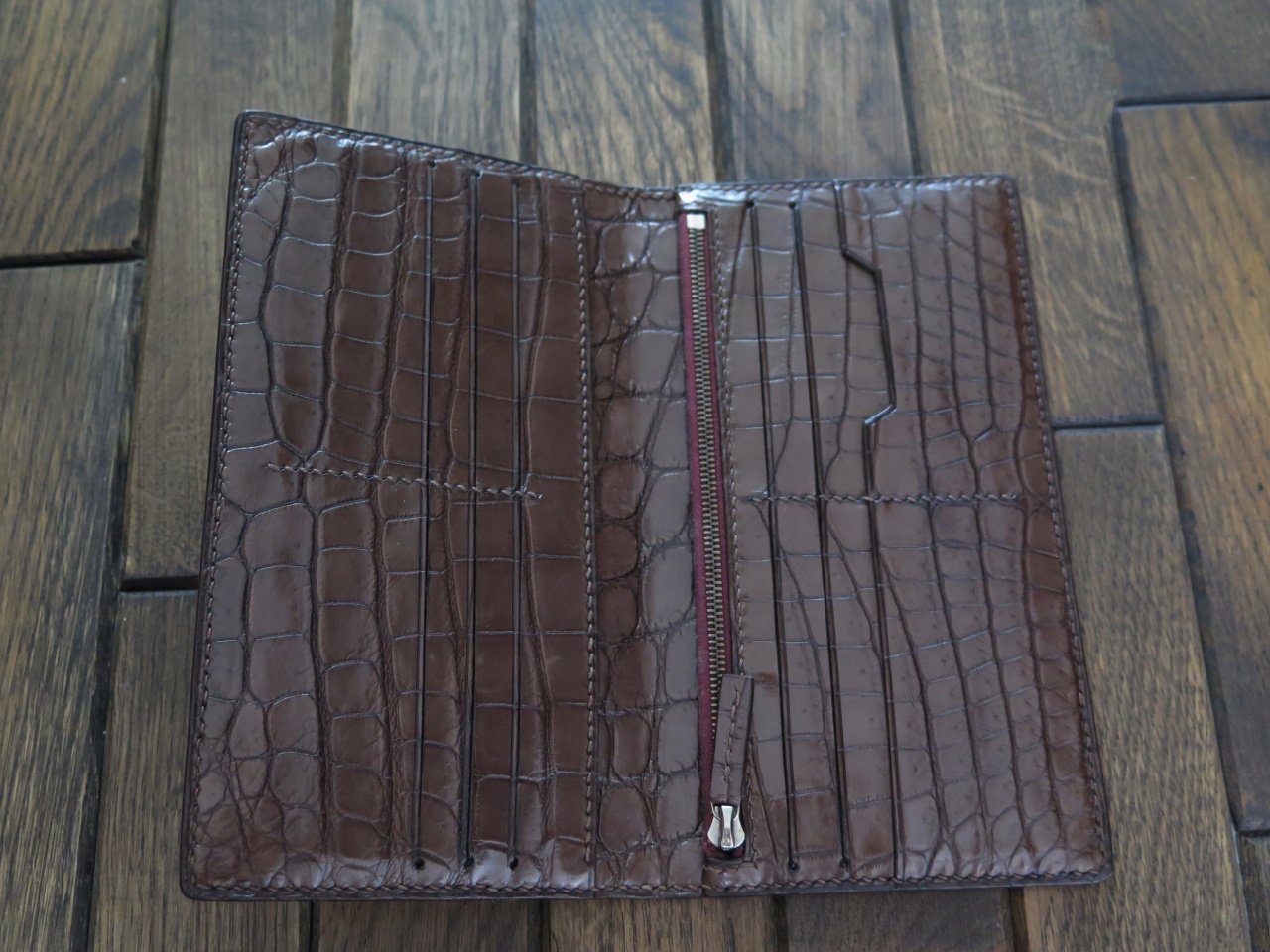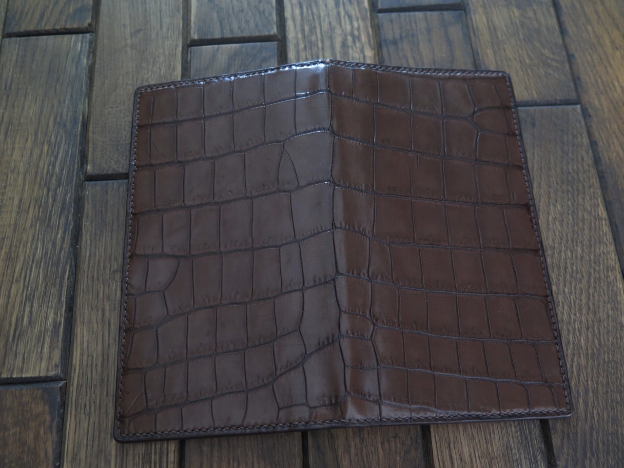 Изготовлено из цельного куска кожи с живота крокодила.