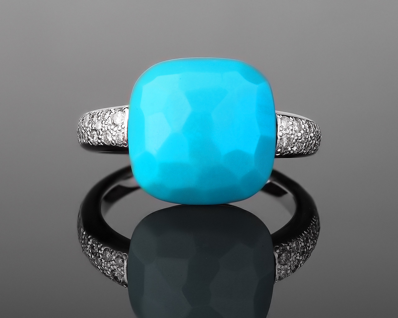 | pomellato capri, бриллиантовое кольцо, золотое кольцо с бирюзой |