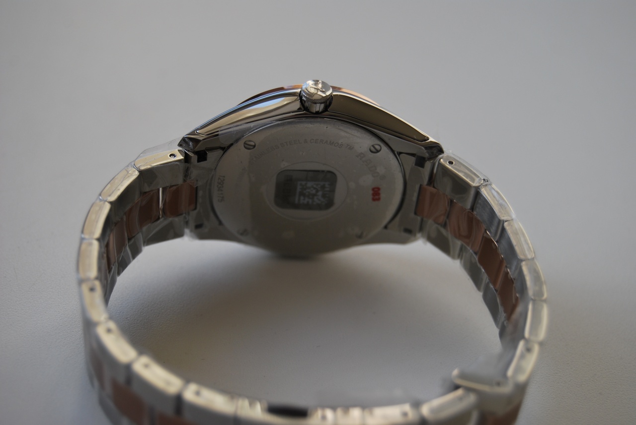 Оформление: Вставки на корпусе и браслете цвета розового золота из материала Ceramos™, корпус размера L