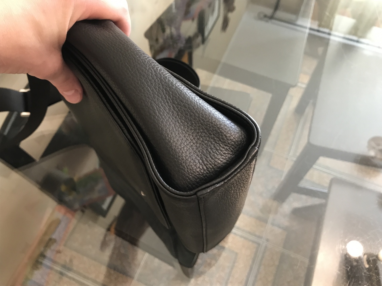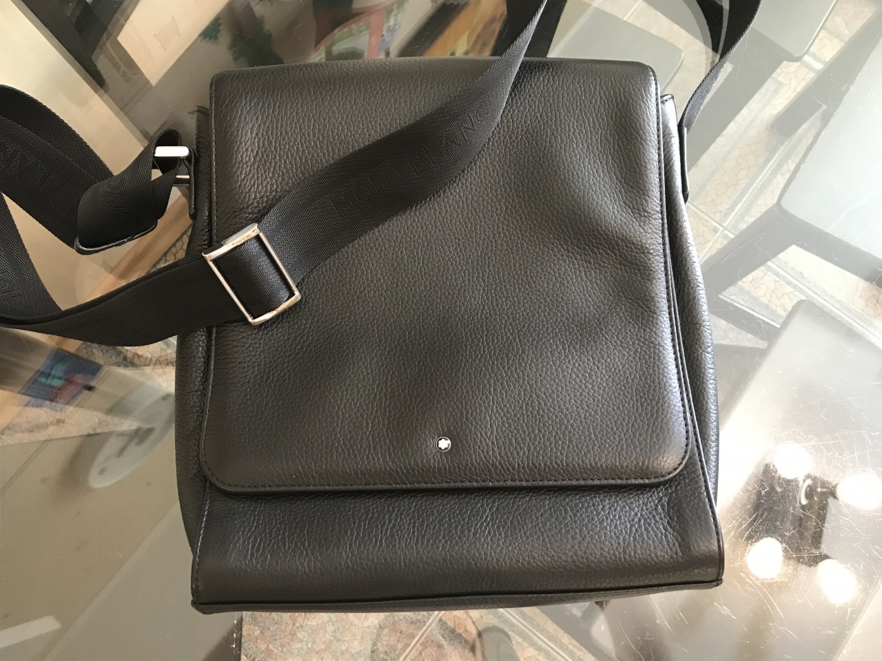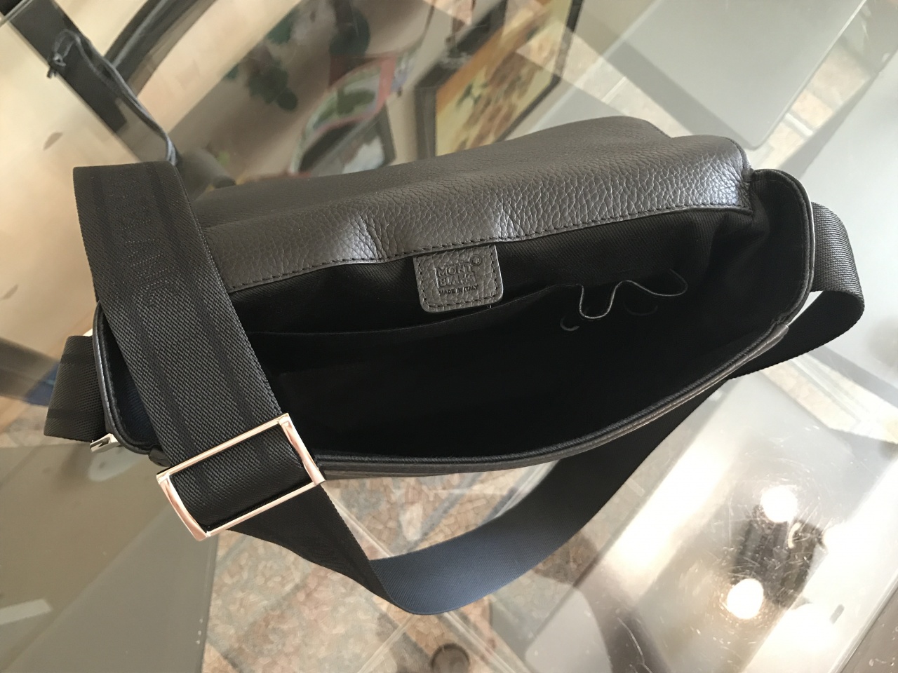 Внутри: основное отделение, держатель для 2 пишущих инструментов, дополнительное отделение. Снаружи на задней стенке карман. Регулируемый плечевой ремень с фирменной маркировкой. Застежка - клапан с магнитом. Фурнитура из нержавеющей стали. Эмблема Montblanc, кольцо с палладиевым напылением.