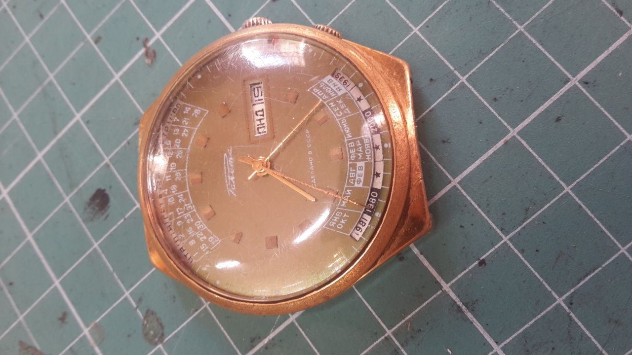 Я недавно был на барахолке и наткнулся на часы "Ракета" с вечным календарем в позолоченом корпусе. Они как позже выяснилось были изготовлены ближе к концу 80-х, и возможно по этому на ходу. Была не родная заводная головка и стекло с трещинами и царапинами. Отнес часовщику, на реставрацию чистку и смазку. Как я понял, стекло он мне поменял, заводную головку тоже и почистил их.