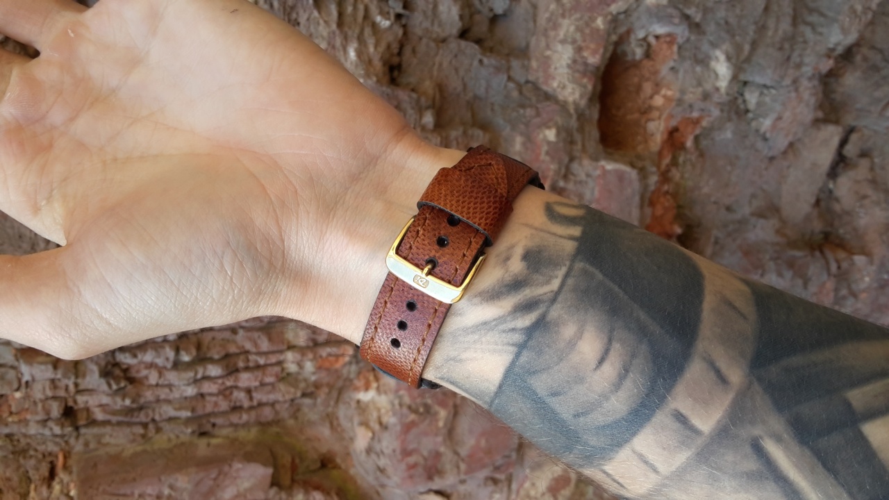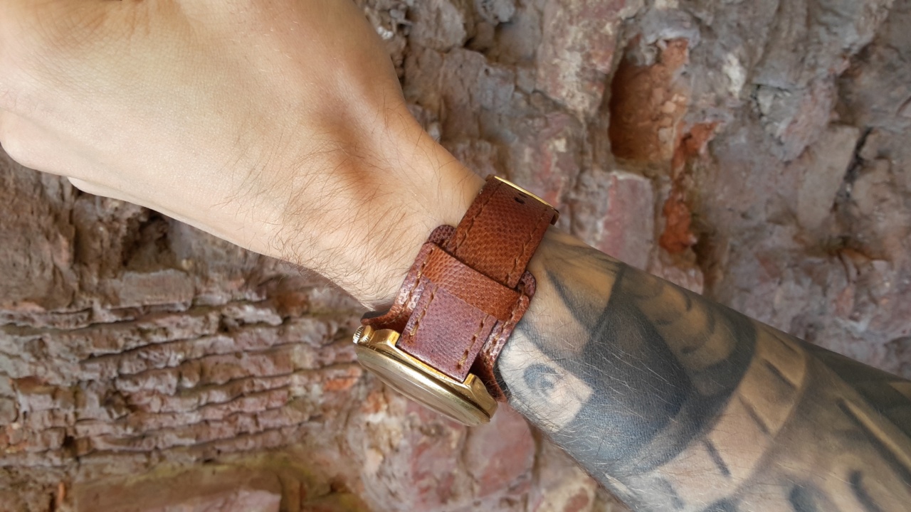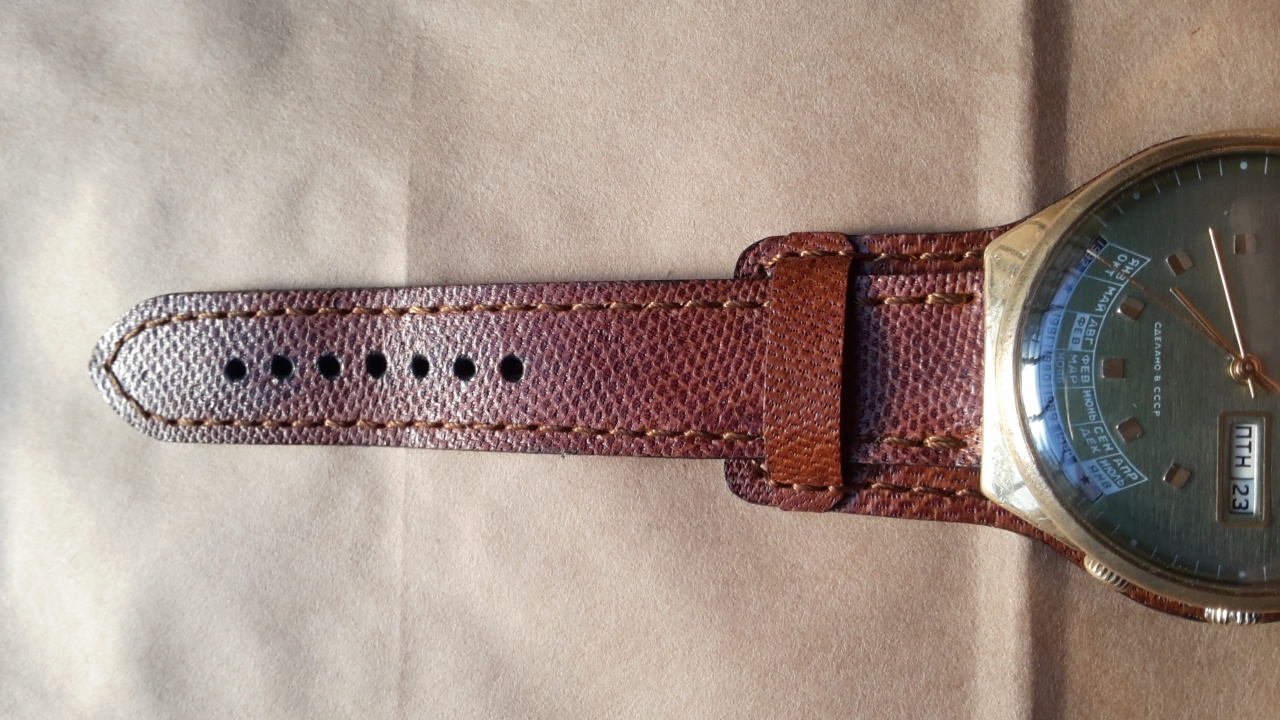 Далее я приступил за изготовление ремешка. У меня завалялся кусок кожи кенгуру, я его выкрасил в коричневый цвет. Решил собрать напульсник. С обратной стороны кожа оленя. Шов ручной, край обработан чёрным воском. На все ушло часа 3, а результат порадовал, хожу с ними первый день..) Что скажете ?