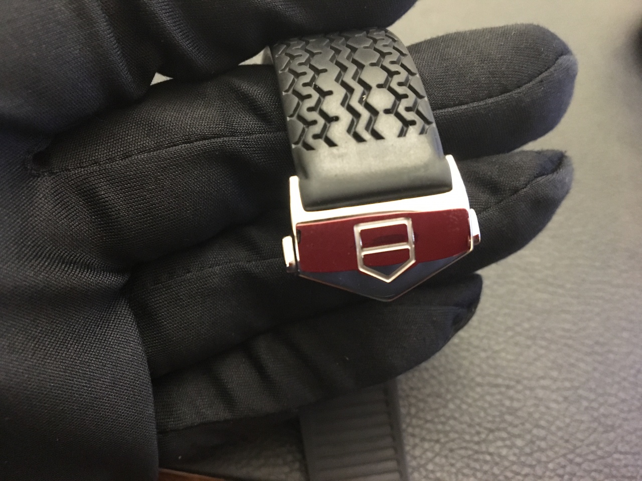 Настоящий гоночный хронограф Carrera, дизайн которого отличается особой внушительностью. К новым элементам дизайна относятся подвергнутый пескоструйной обработке черный титановый корпус, керамический безель с тахиметрической шкалой, модернизированная раскладывающаяся застежка черного цвета на ремешке в стиле high-tech из кожи аллигатора категории Soft touch. В заднюю крышку корпуса теперь вставлено дымчатое сапфировое стекло, сквозь которое целиком виден впечатляющий часовой механизм, Calibre 1887. Накладные цифры в стиле приборов автомобиля и рамка окошка указателя даты покрыты «черным золотом». Серьезный претендент на поул-позицию. Часовой механизм Calibre 1887 с частотой баланса 28 800 полуколебаний в час и 50-часовым запасом хода имеет интегрированный хронограф с колонным колесом. Особое место среди его 320 деталей занимает качающееся зубчатое колесо, изобретенное в 1887 году и подвергнутое для этого механизма смелой модернизации, в паре с подходящим к нему синим колонным колесом. Взаимодействие качающегося зубчатого колеса, запатентованного в 1887 году Эдуардом Хоэром, и колонного колеса напоминает работу трансмиссии в автомобиле. Колонное колесо, управляющее функциями запуска, остановки и обнуления показаний хронографа, выполняет в часах роль коробки передач. А качающемуся зубчатому колесу отводится роль сцепления. Ремешок каучуковый с рисунком шины.