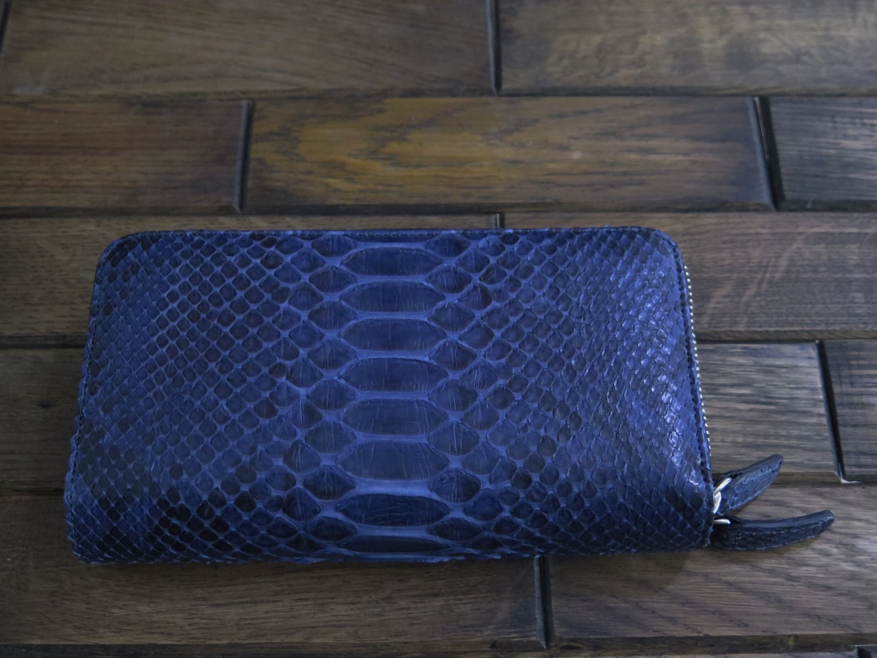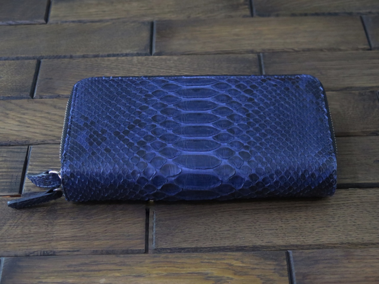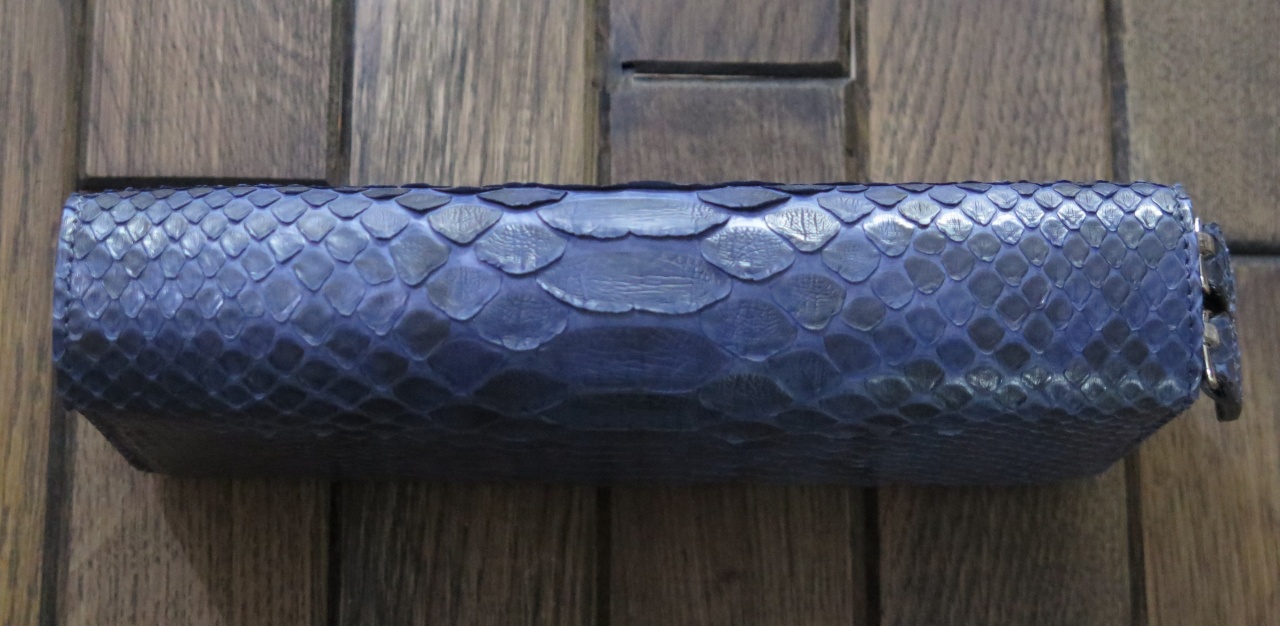 МУЖСКОЙ КЛАТЧ НА ДВУХ МОЛНИЯХ И КОЖИ КРУПНОЙ АНАКОНДЫ, ЦВЕТ СИНИЙ. ИТАЛИЯ