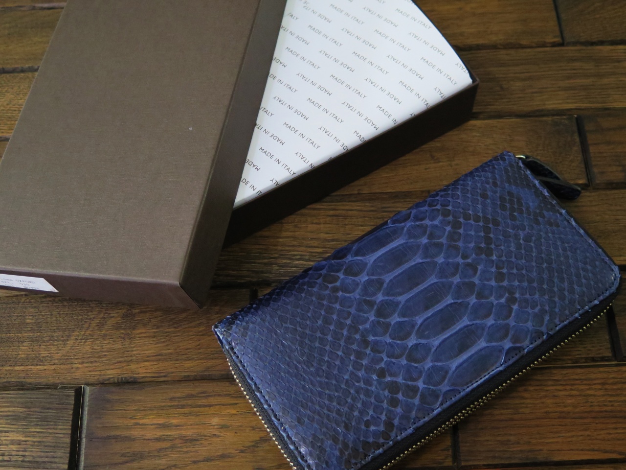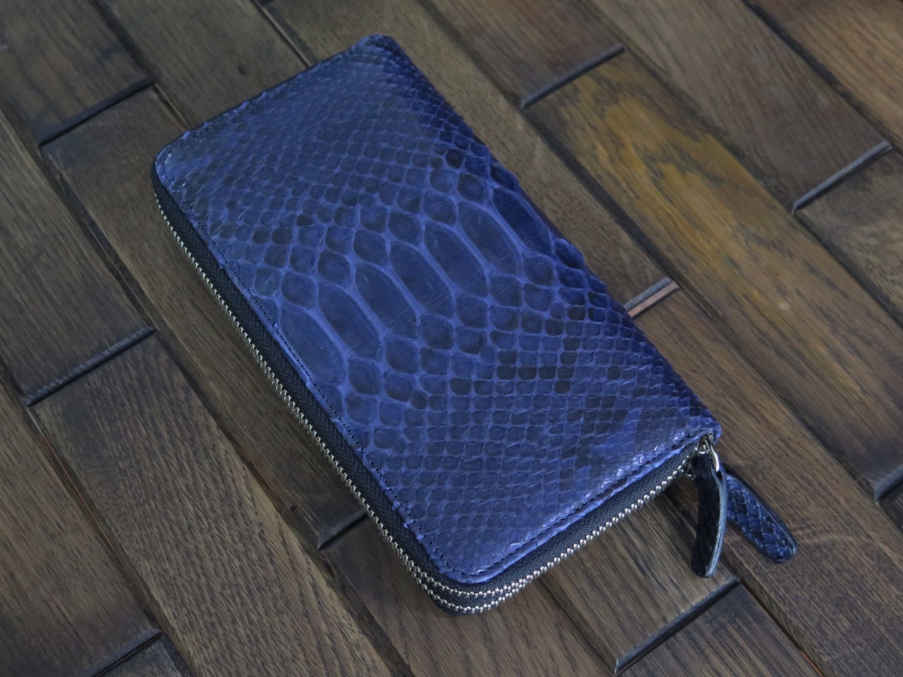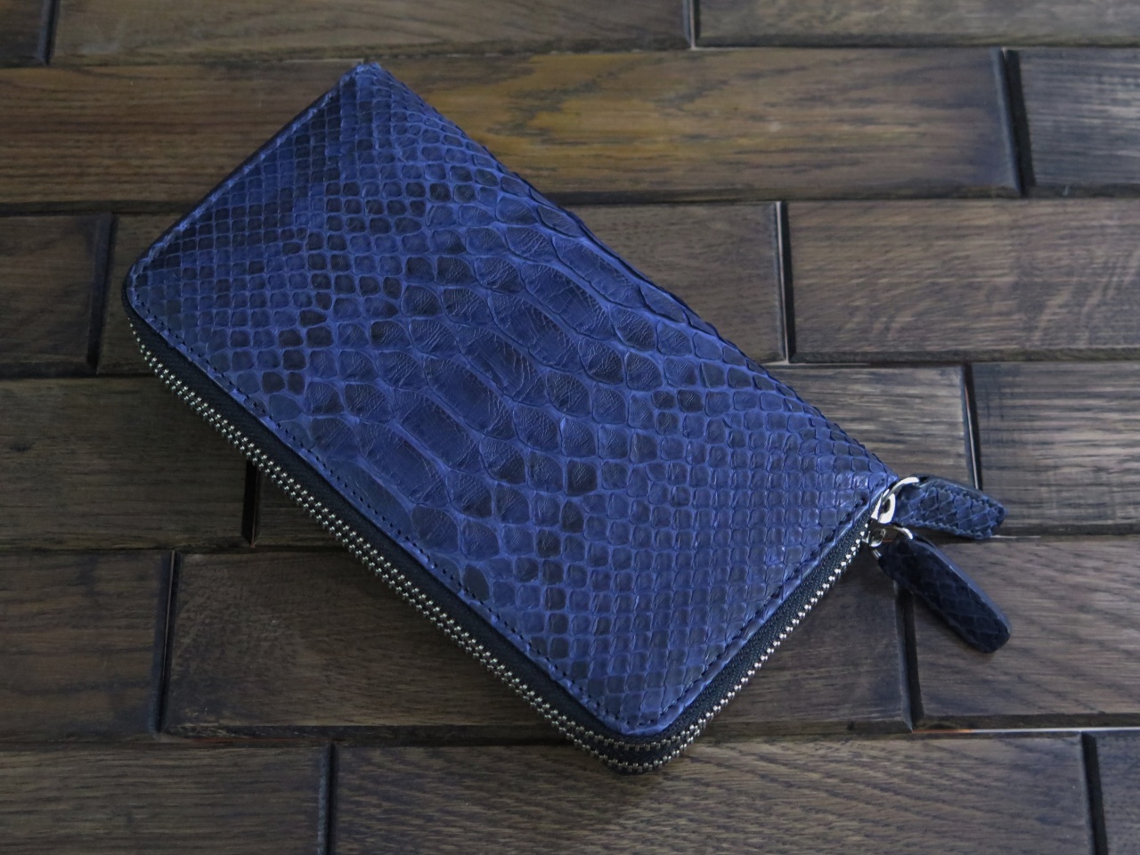 МУЖСКОЙ КЛАТЧ НА ДВУХ МОЛНИЯХ И КОЖИ КРУПНОЙ АНАКОНДЫ, ЦВЕТ СИНИЙ. ИТАЛИЯ