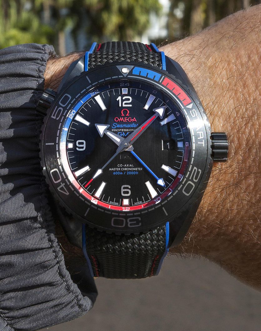 MSRP модели Omega Seamaster Planet Ocean ETNZ Deep Black GMT составляет $ 11200.
