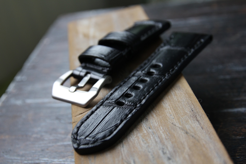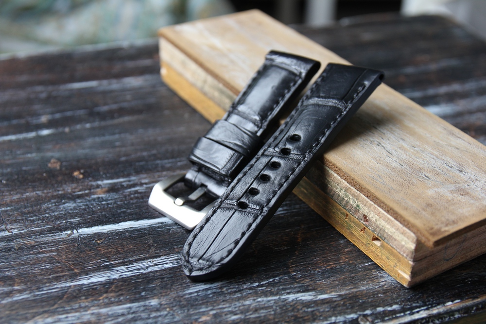 Ремешки на Panerai, черный и бордовый крокодилы.
