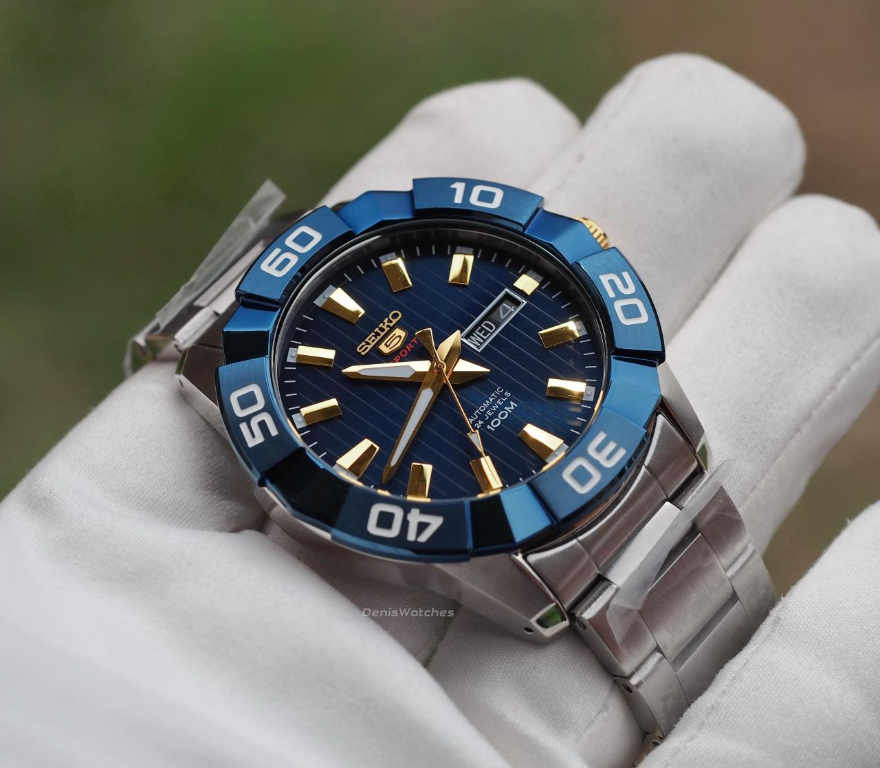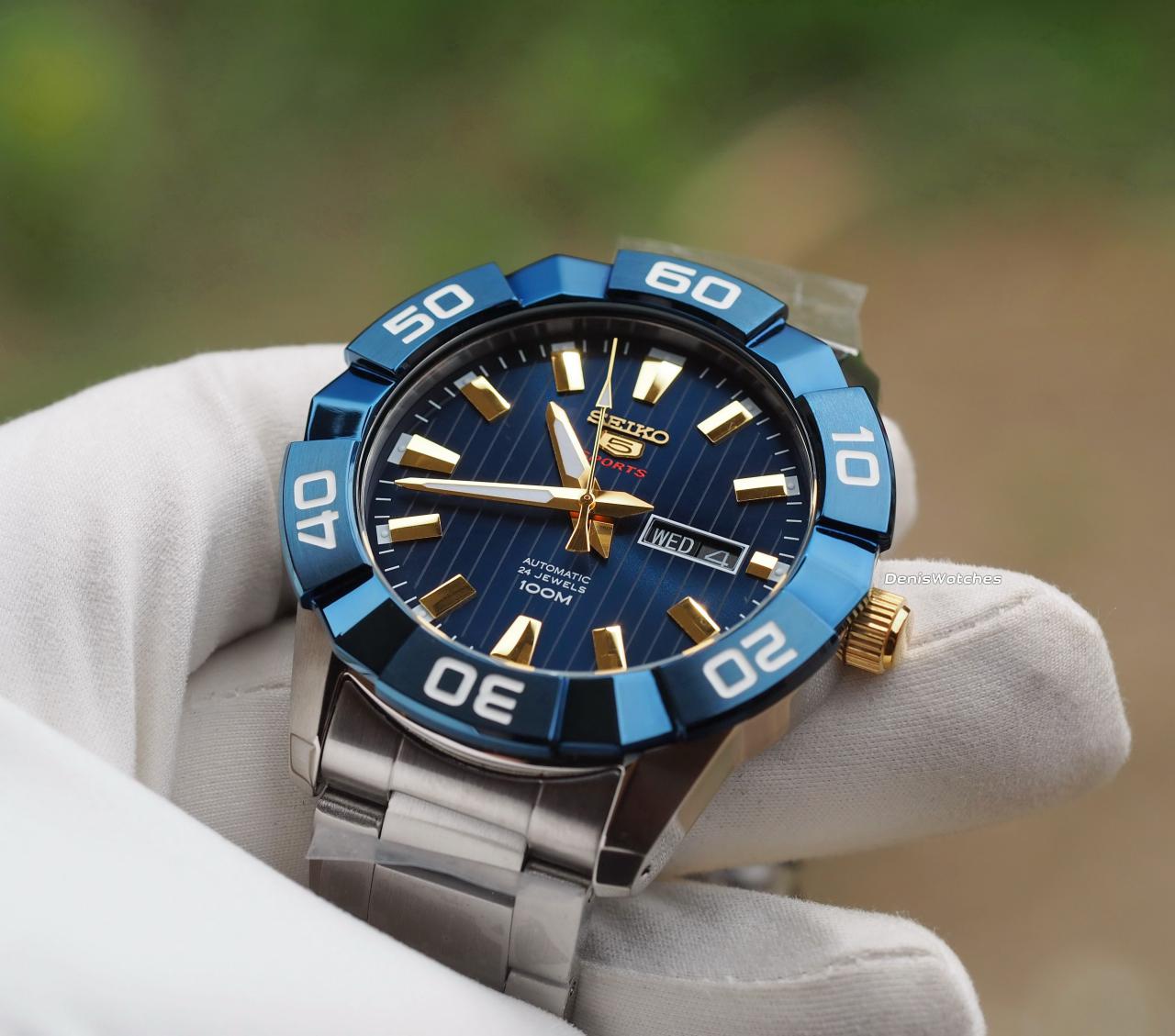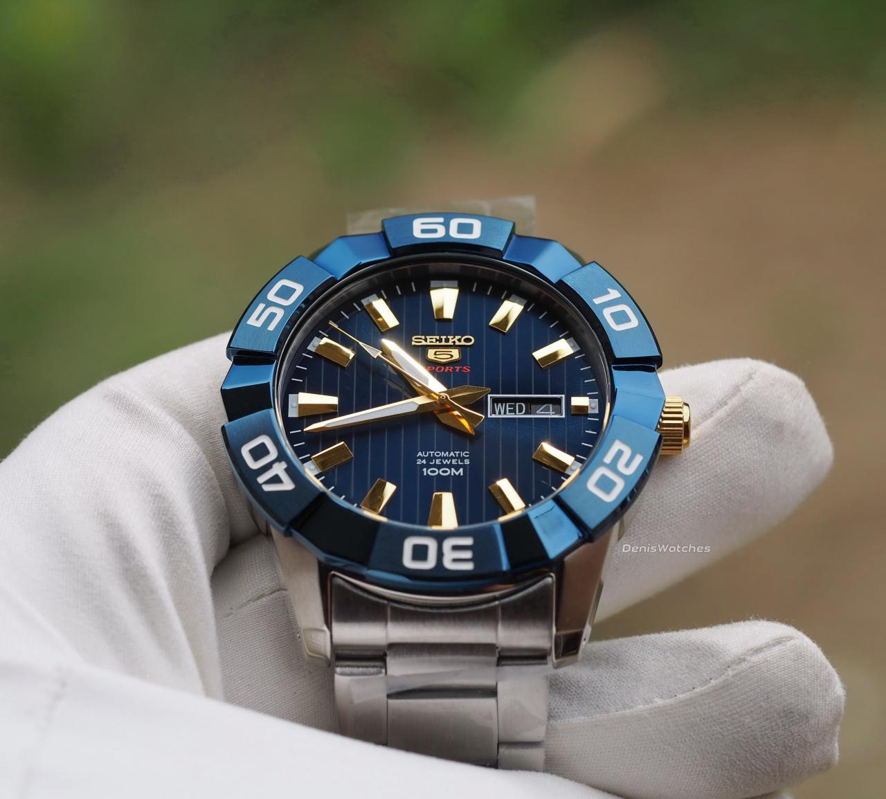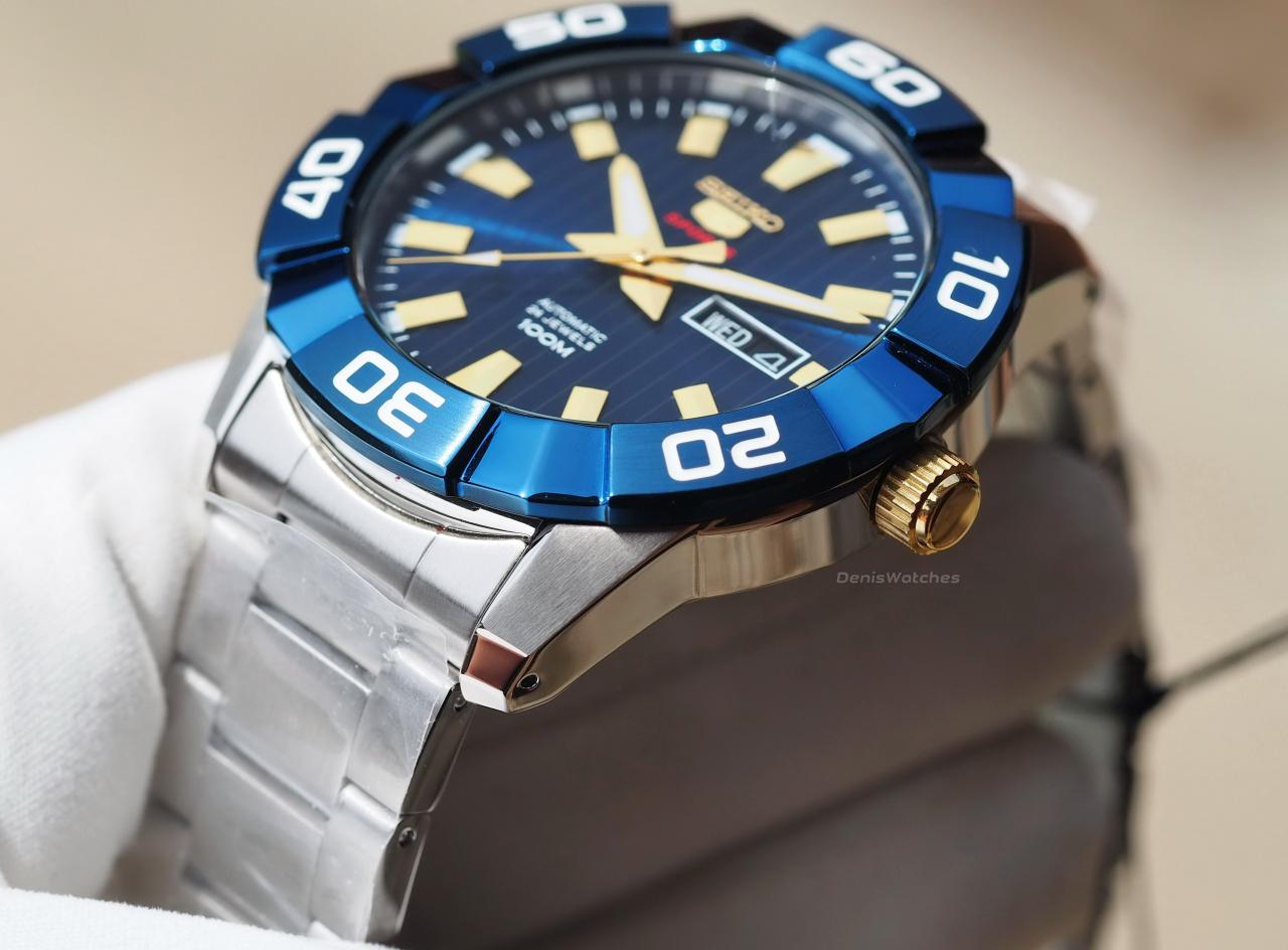 Синий циферблат, красивый глубокий цвет, накладные метки, лого Seiko и 5