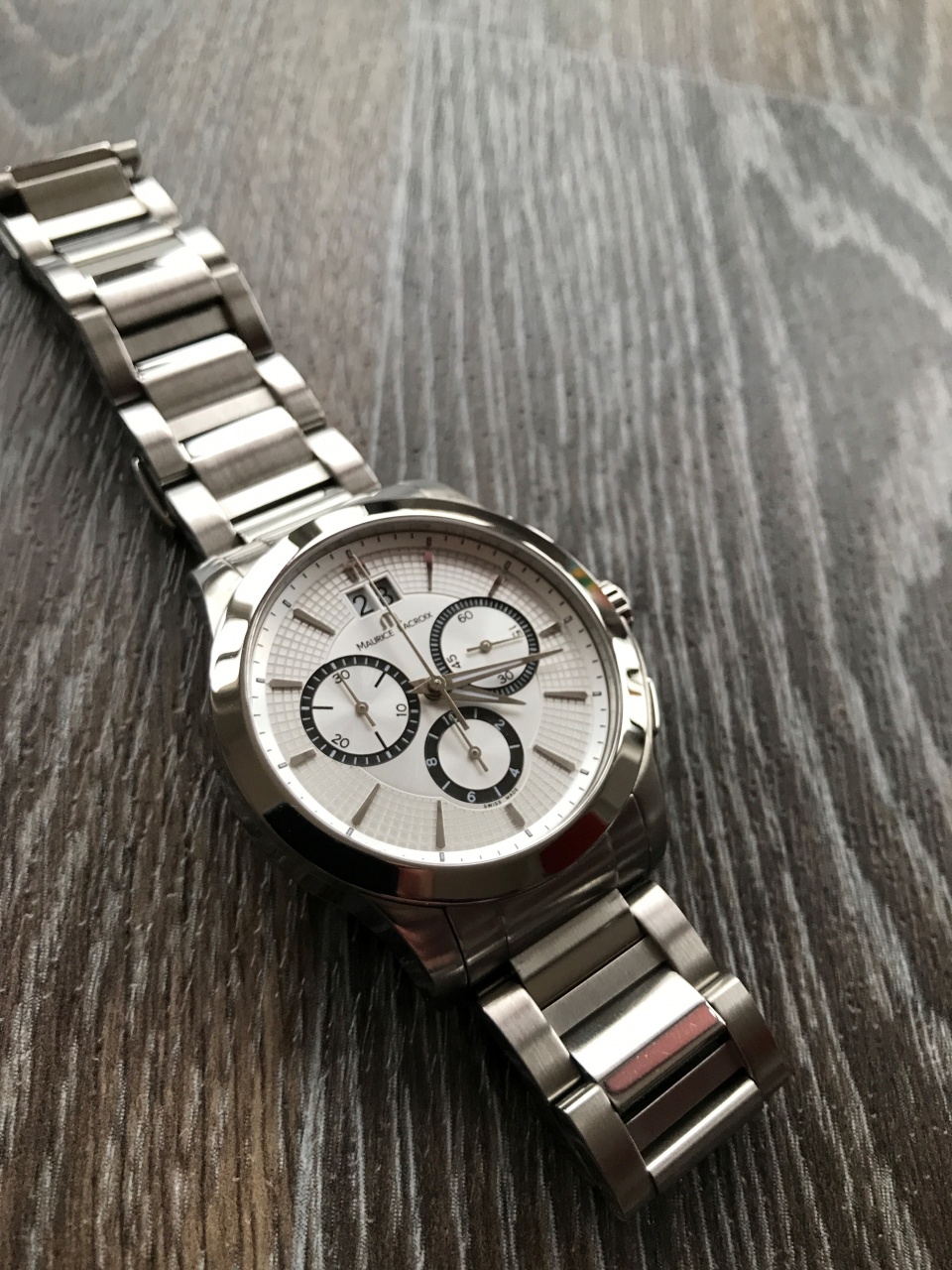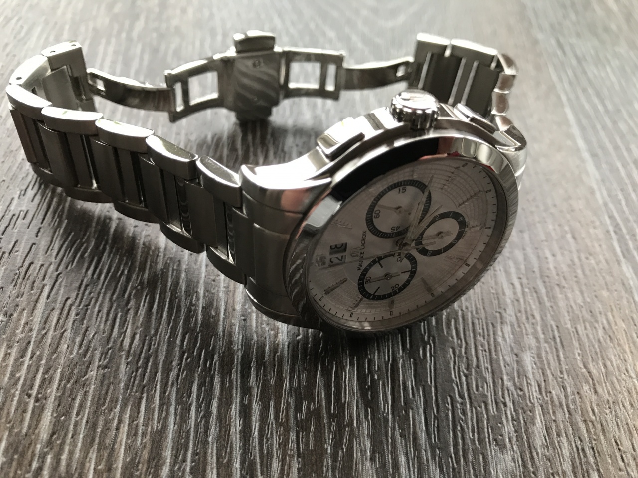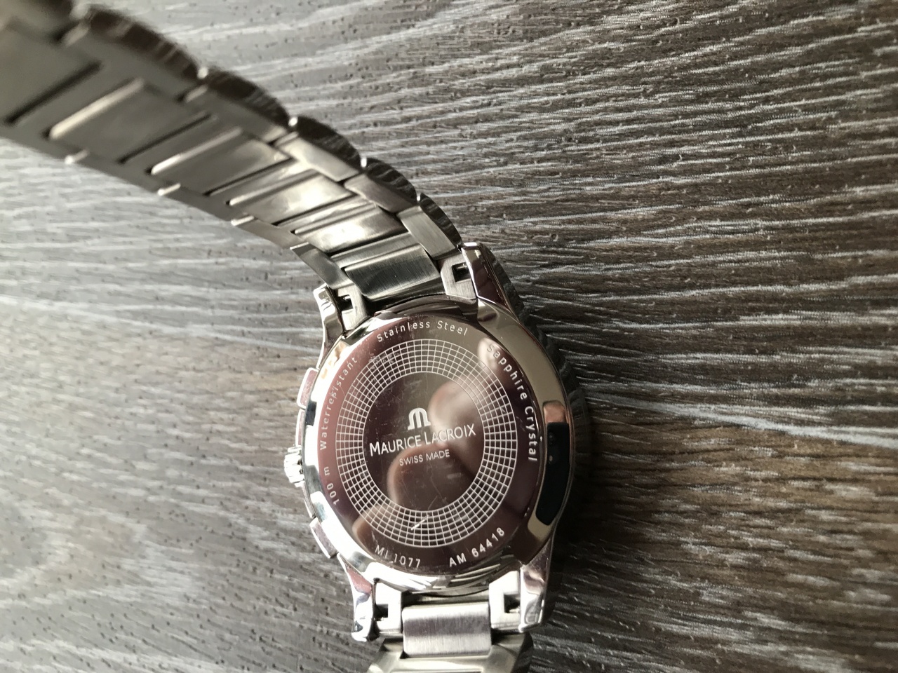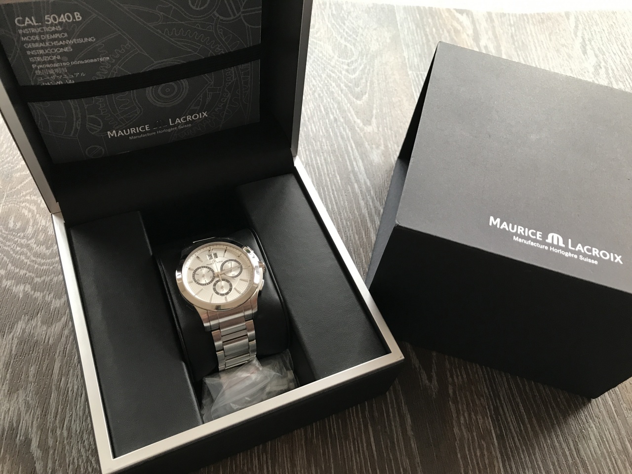 НОВЫЕ ОРИГИНАЛЬНЫЕ МУЖСКИЕ ШВЕЙЦАРСКИЕ ЧАСЫ Maurice Lacroix Miros Chronograph Big Date, Ref. MI1077-SS002-130. В этом разделе только по причине того что три раза выгуливались и есть одна маленькая царапка за задней части крышки. Полный комплект: коробка шкатулка, документы, гарантийная карта почти на два года, доп.звенья к браслету.