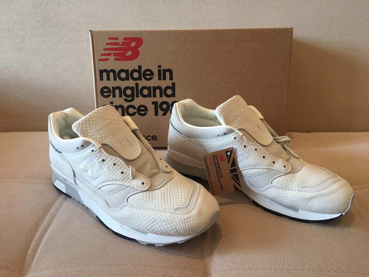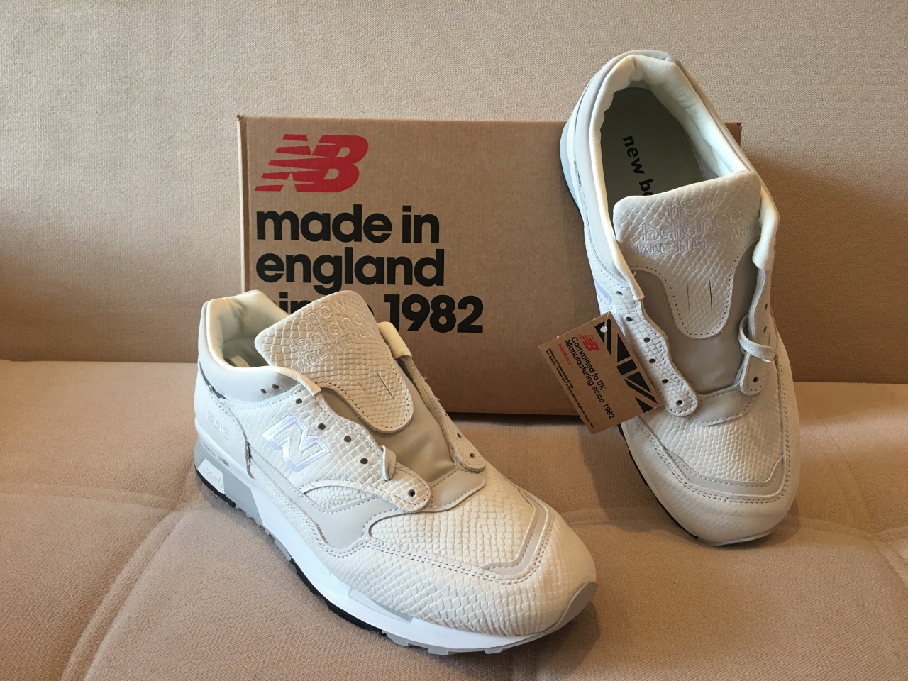 Выполнены из премиального нубука с имитацией кожи рептилии. Классический силуэт, традиционная система шнуровки и стабилизационная вставка. Верх модели установлен на подошву с применением технологии Encap, обеспечивающей высокий уровень комфорта. Язычок украшен вышитым логотипом бренда и напоминанием о своём английском происхождении. Кроссовки представлены в эффектной, кремовой расцветке, которая будет уместна как в спортивном, так и в более формальном образе. Сделано на знаменитой фабрике Flimby, в Северной Англии.