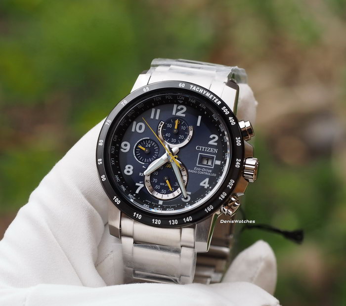 Cиний спортивный хронограф на топовом калибре H800 с всемирным радиоконтролем
