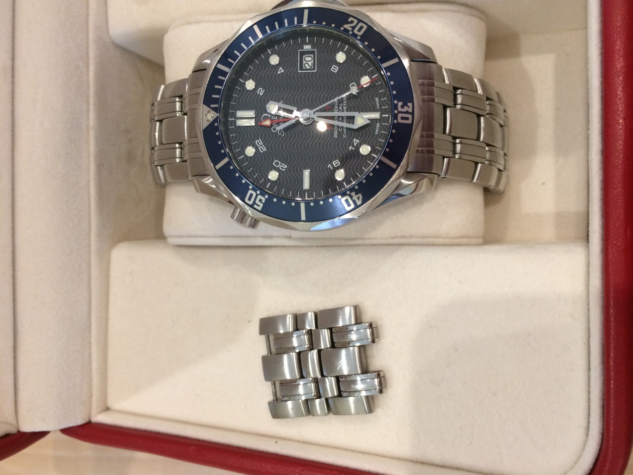 Продаю omega seamaster gmt. Механизм с коаксиальным спуском. Состояние отличное. Полный набор звеньев браслета. Коробка и полный набор документов в наличии. Репассаж делался в 2014 году. в 2016 году проходили проверку на точность хода и герметичность в Точном ходу. Данные на фото. Любые проверки за ваш счет. Нахожусь в Туле. С продажей не тороплюсь.
