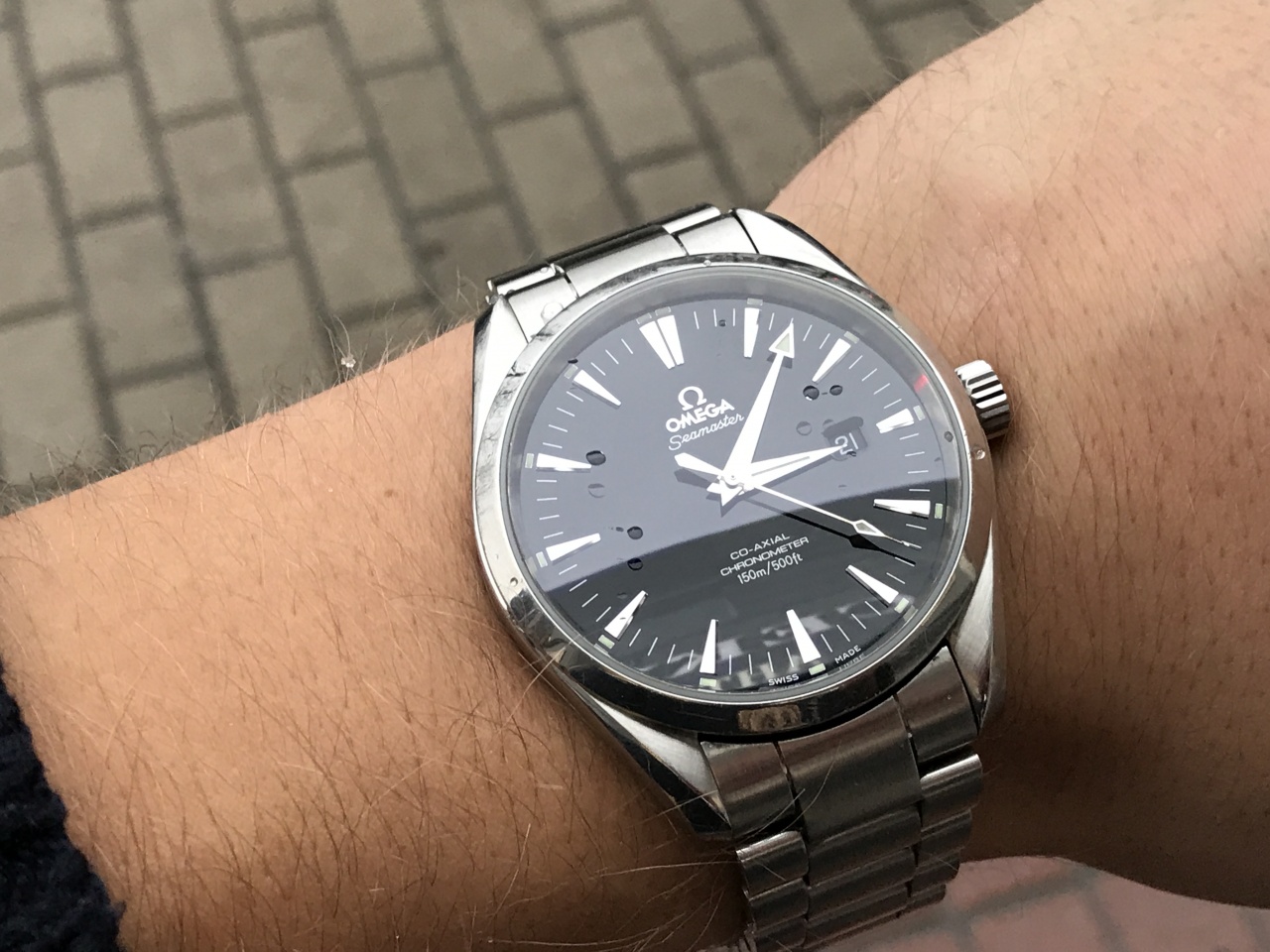 Редкая и крупная Omega Seamaster Aqua Terra 42.2 ( Браслет , Накладные метки , Черный циферблат )