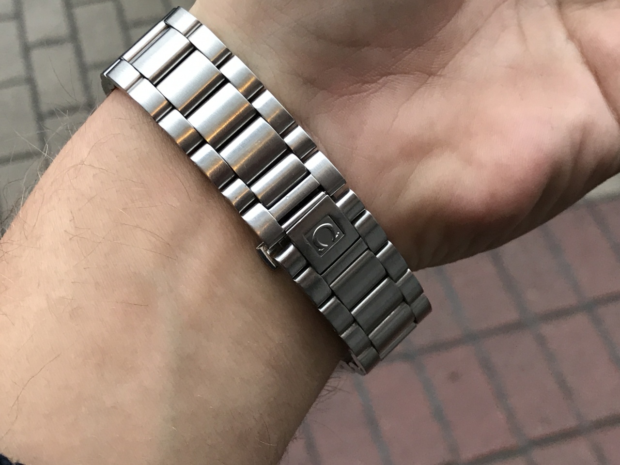 Шикарная и крупная Omega! Ход отличный , есть следы носки но глубоких вмятин и царапин нету! Стекло с антибликом без сколов и царапин! Есть следы на стрелках но видны только под определенным углом! Отдельно обговаривается полировка в подарок! Очень редки в продаже! Прекрасно сидит на руке, браслет длинный