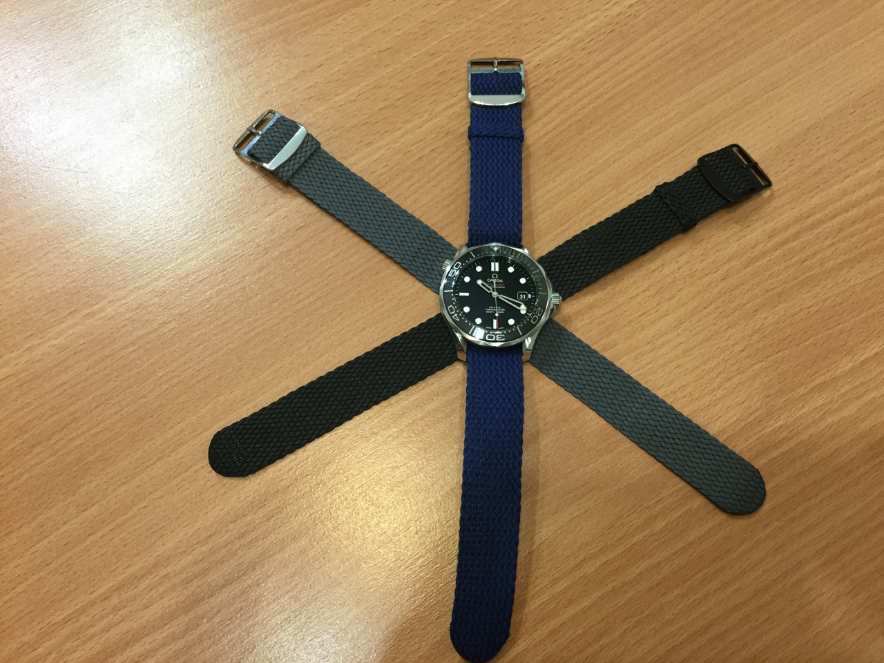 Став совсем недавно владельцем Omega Seamaster Diver 300M задумался о варианте смены родного браслета на какой-либо альтернативный вариант, самым подходящим из которых, на мой взгляд, оказались ремешки Perlon. Родной браслет Omega очень хороший и достаточно качественный, но не такой удобный как на имеющихся Rolex. Смене браслета на ремешок также поспособствовала старая привычка Paneristi. Собственно венцом мысли о смене браслета на ремешок было непосредственное приобретение нескольких ремешков Perlon, классических цветов (черный, серый и синий).