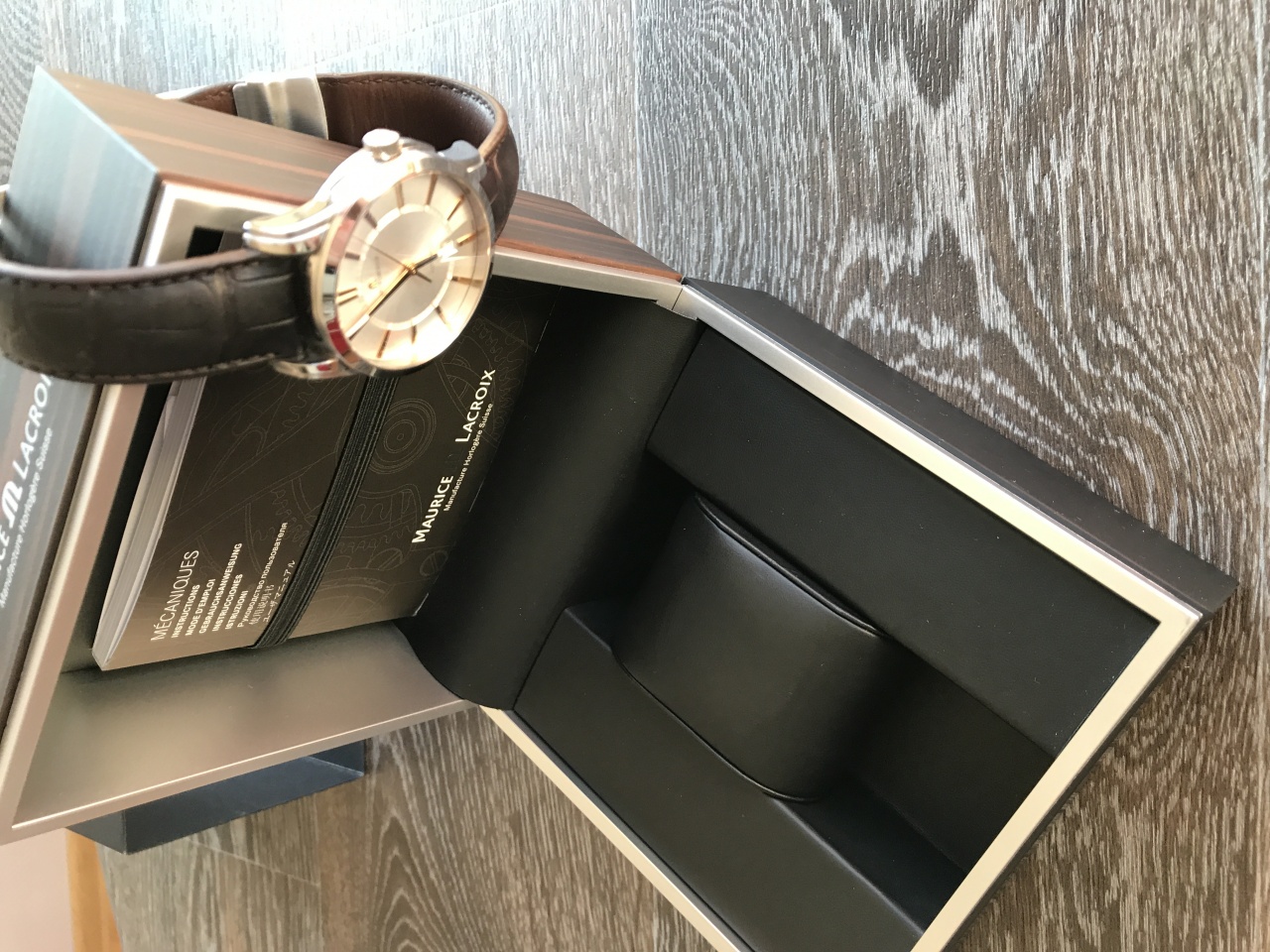 Оригинальные мужские часы с автоподзаводом Maurice Lacroix Pontos PT6148-SS001-131-2. Калибр: ML115. Часы в прекрасном состоянии! Полный комплект: шкатулка, документы, карта. Есть едва заметная паутинка на безеле легко устранимая. Стекло сапфировое с антибликовым покрытием. Люминесцентные стрелки и метки с алмазной огранкой. Ремешок из кожи аллигатора в хорошем состоянии, клипса из стали. Водозащитна: 50м. Размер: 40мм. Цена в бутиках 130-160000₽. Часы в сэте не единственные потому выгуливались редко! Достойный экземпляр за небольшие деньги! Обмен возможен но в приоритете продажа!