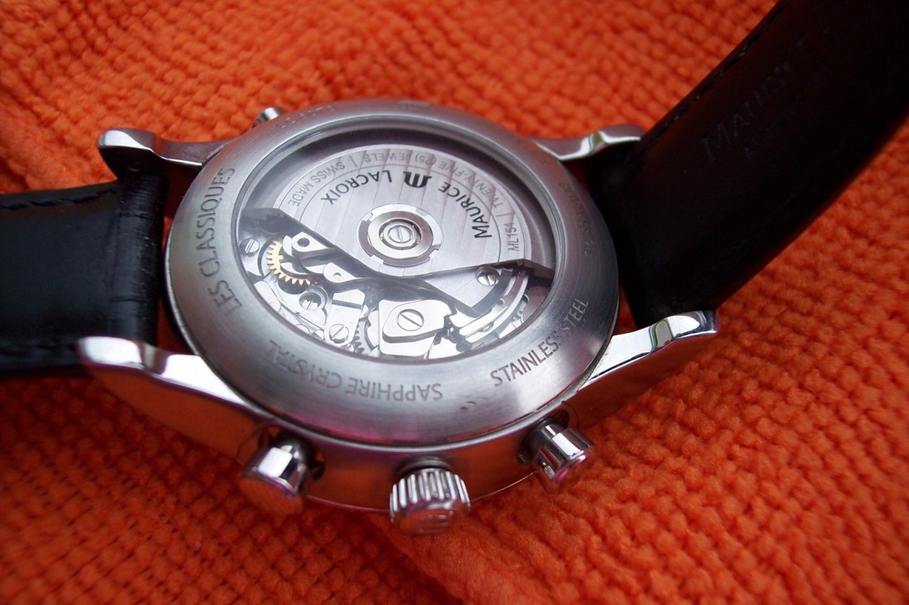 Maurice Lacroix "Les Classiques Phase de Lune". Automatic Chronograph Mens Watch LC6078-SS001-13E.Приобретены в Москве в декабре 2012 года, все чеки, документы, коробка , карточки в наличии,практически все это время не использовались. Pазмер 42 мм. Средняя цена в магазинах Москвы порядка 227 000 руб.