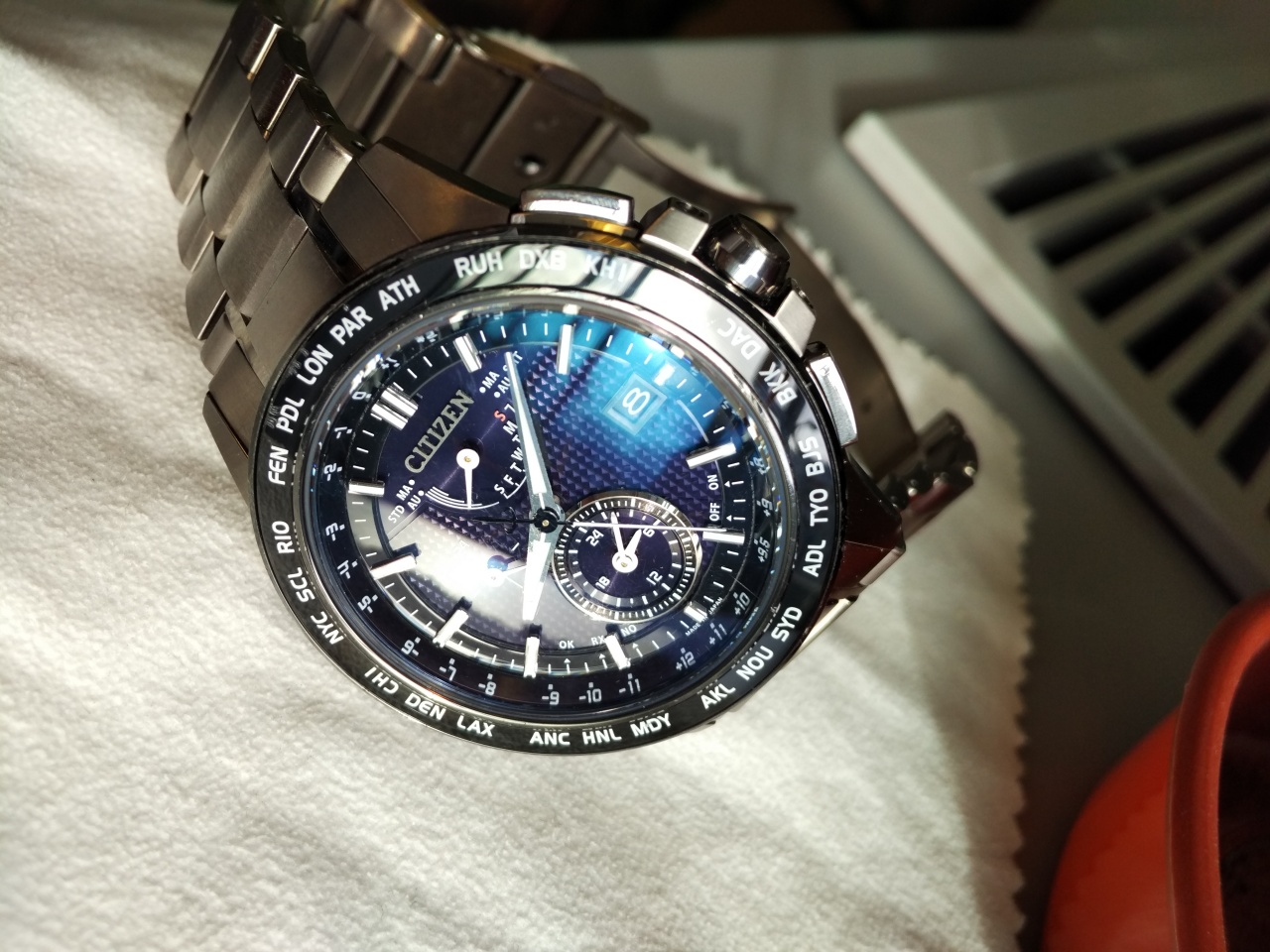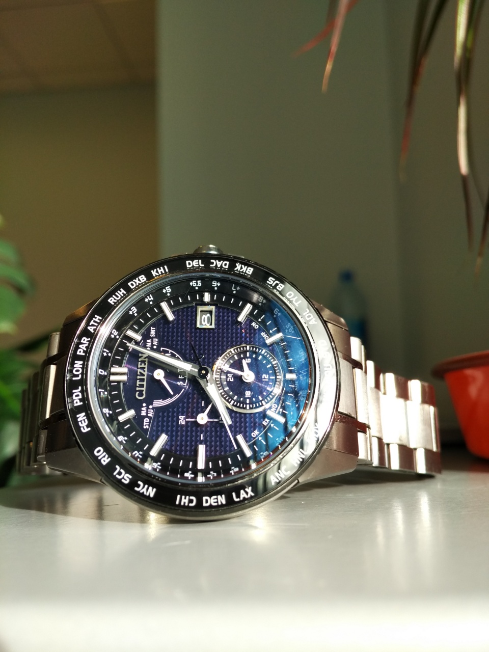 Итак, часы попали ко мне из США без коробок, документов и покупая их, мне просто хотелось понять и почувствовать что такое Attesa от Citizen. Часы на довольно популярном калибре H820, Duratect, радиосинхра, титан, Made in Japan. Судя по серийному номеру (начинающемуся с 451….) часы произведены в 2014 году, то есть довольно молодые