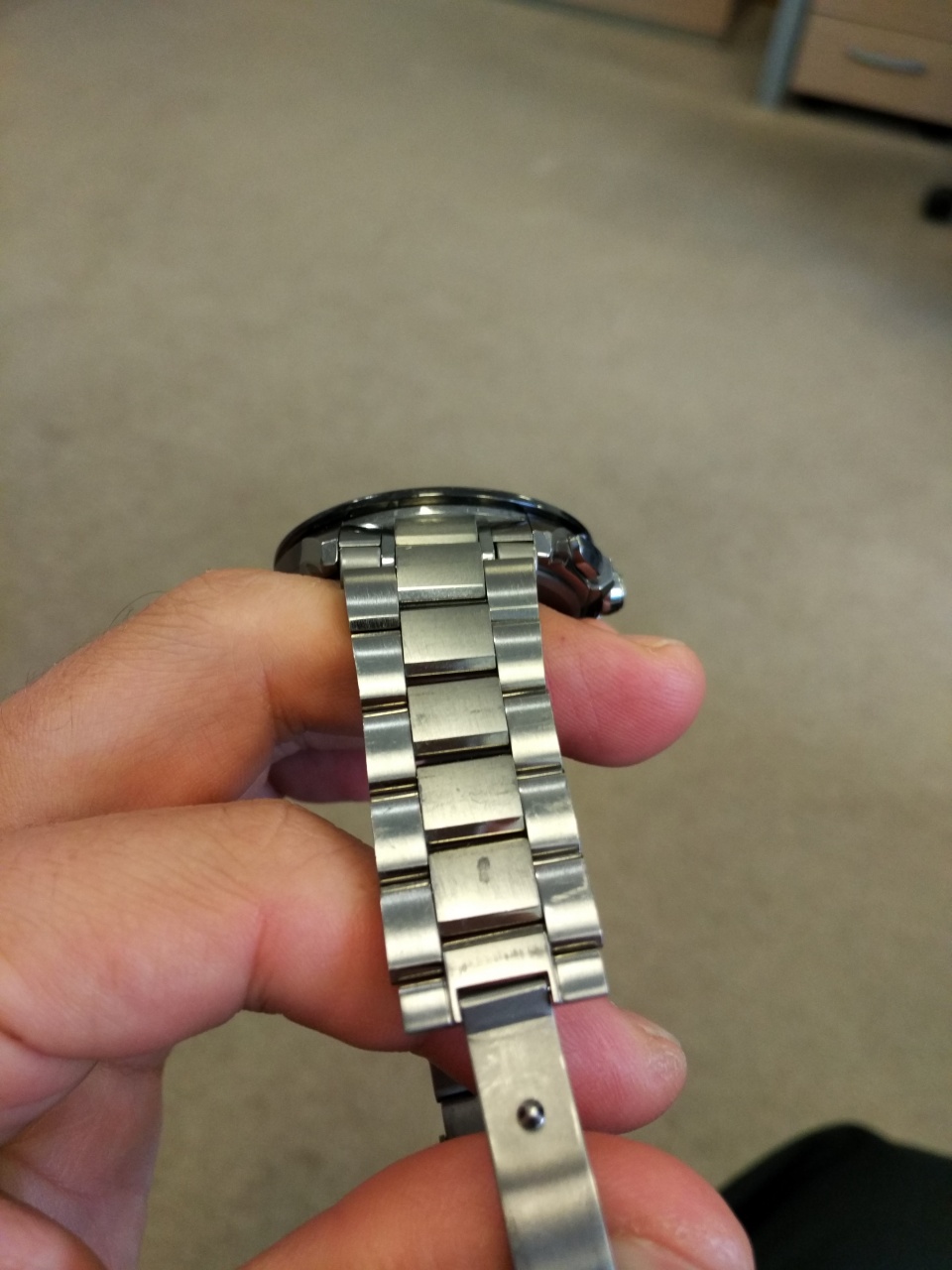 Браслет часов четко дает понять, что часы использовались «и в хвост и в гриву» (что очень жаль). От сильных затертостей застежки ни спас никакой Duratect. Большая часть звеньев браслета также имеют отчетливо видимые места постоянного контакта с элементами внешнего мира