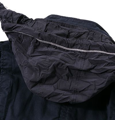 - воротник-стойка, с убирающимся во внутрь капюшоном;
