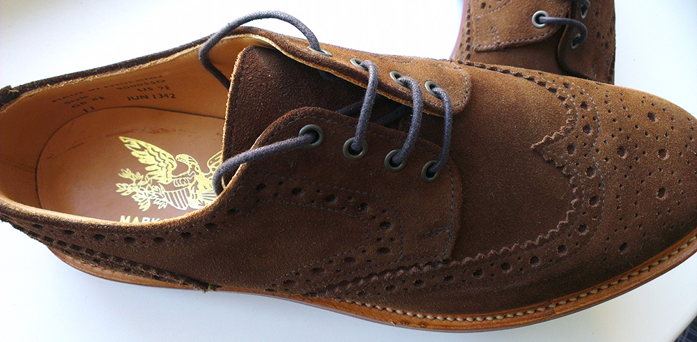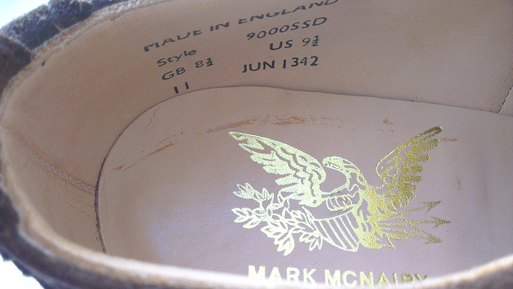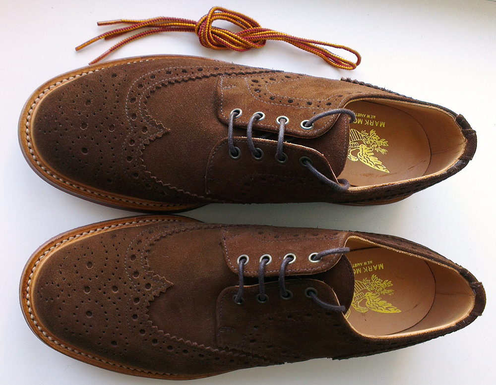 Сделаны в Англии на фабрике Sanders для дизайнера Mark McNairy. Новые, только домашняя примерка. Великолепная замша верха, подкладка из телячьей кожи, толстая кожаная стелька. Крепление подошвы по методу goodyear welted. Одна из лучших в мире подошв Ridgeway от Dainite. В комплекте 2 пары шнурков разного цвета.
