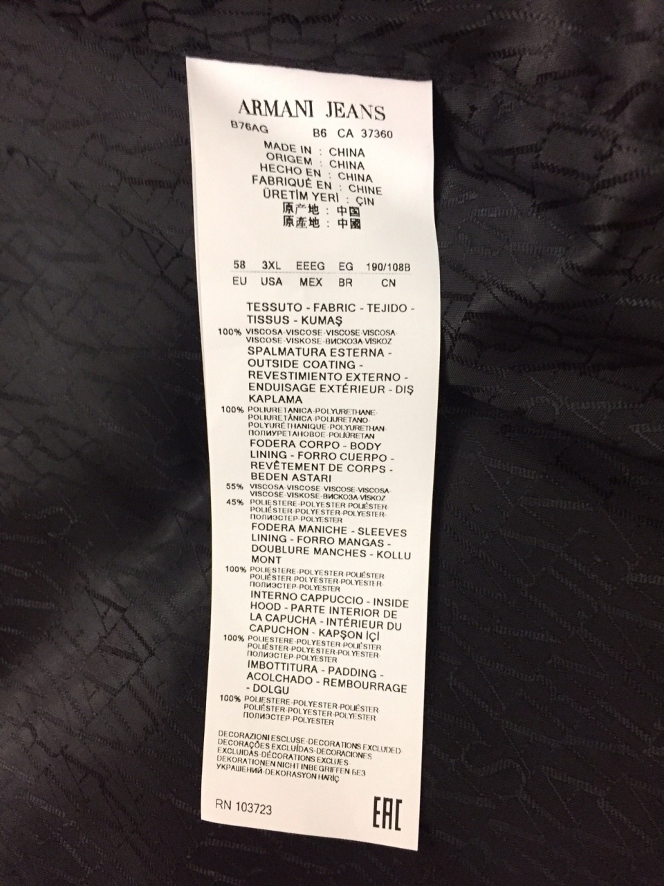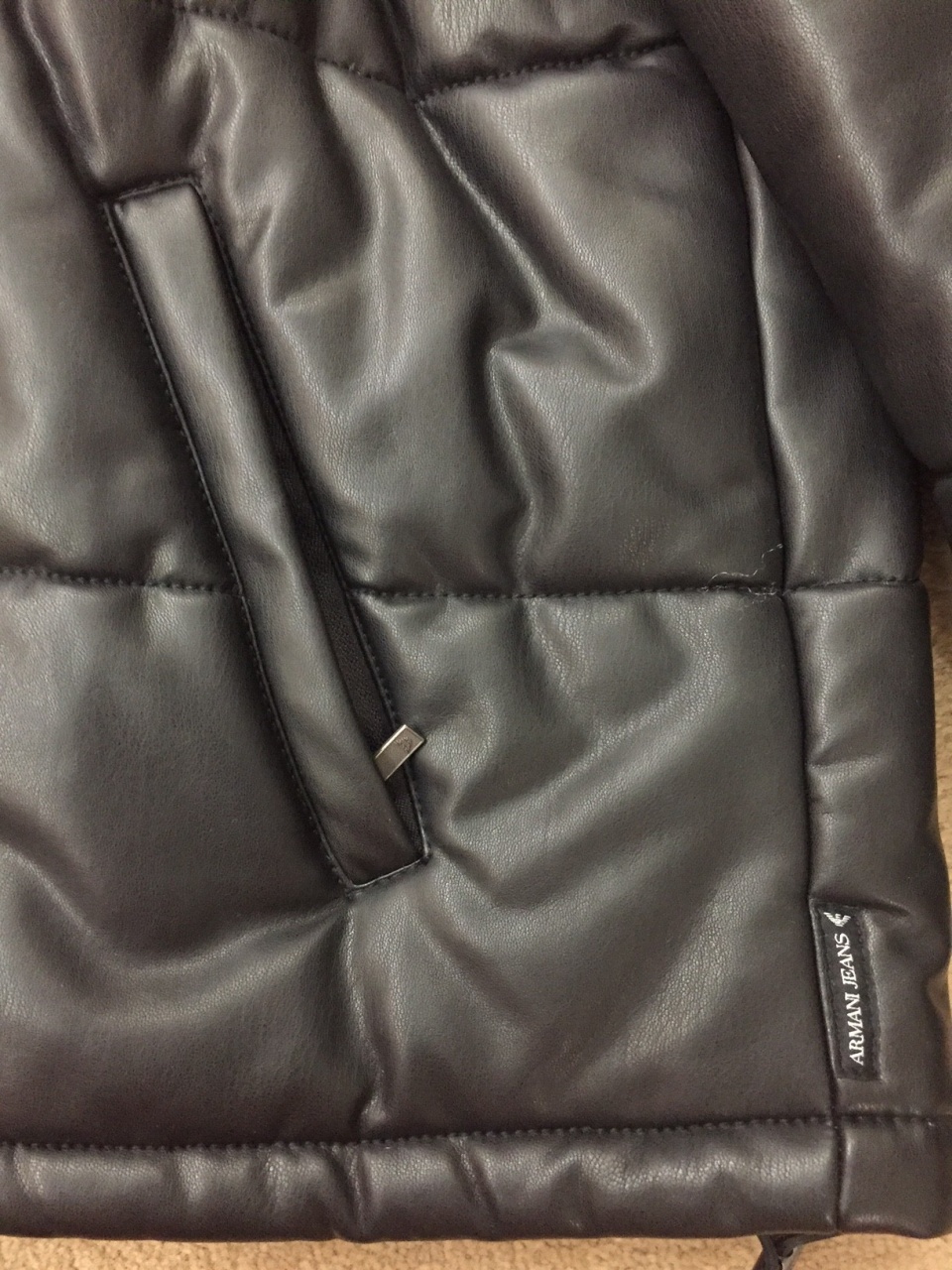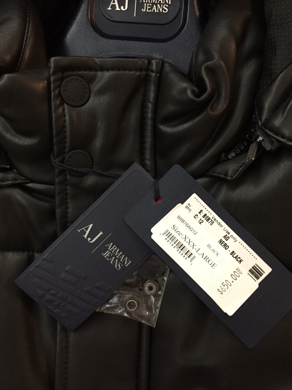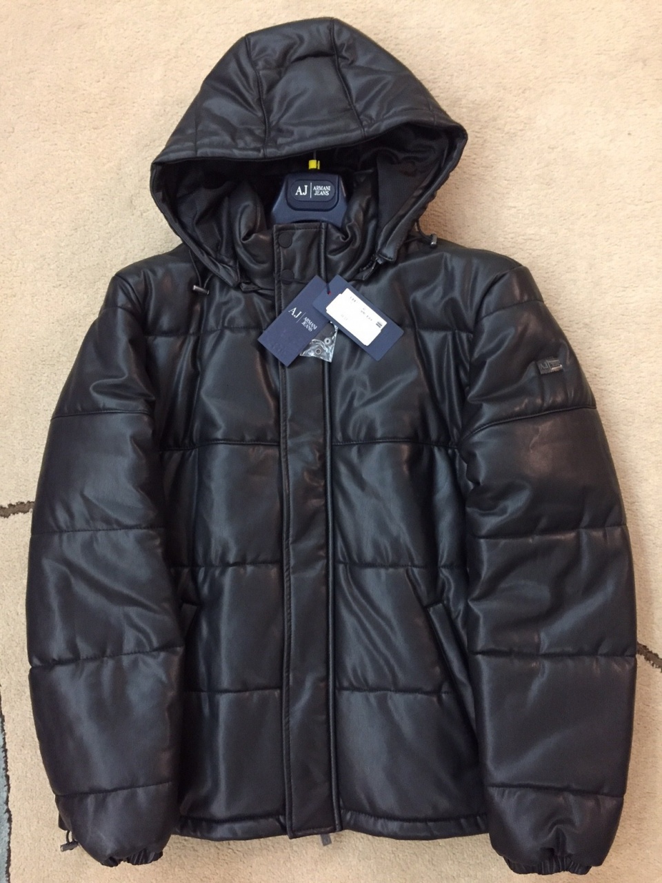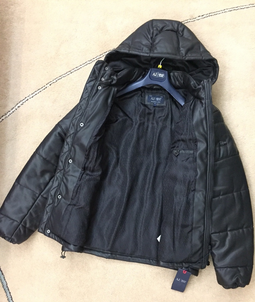 Мужской короткий пуховик с капюшоном из искусственной кожи, куртка стеганая B6B76 Ag 12 черный ARMANI JEANS.