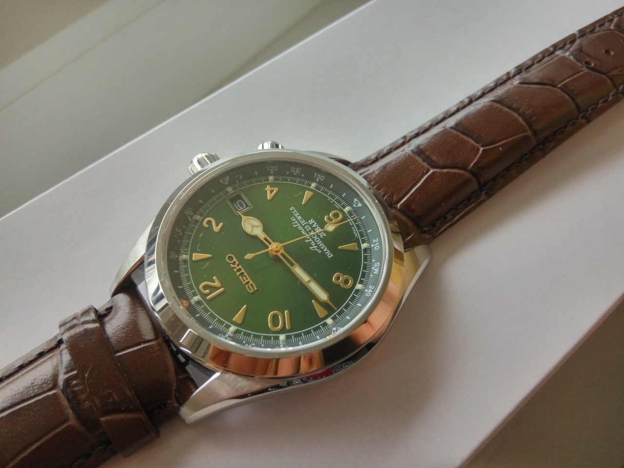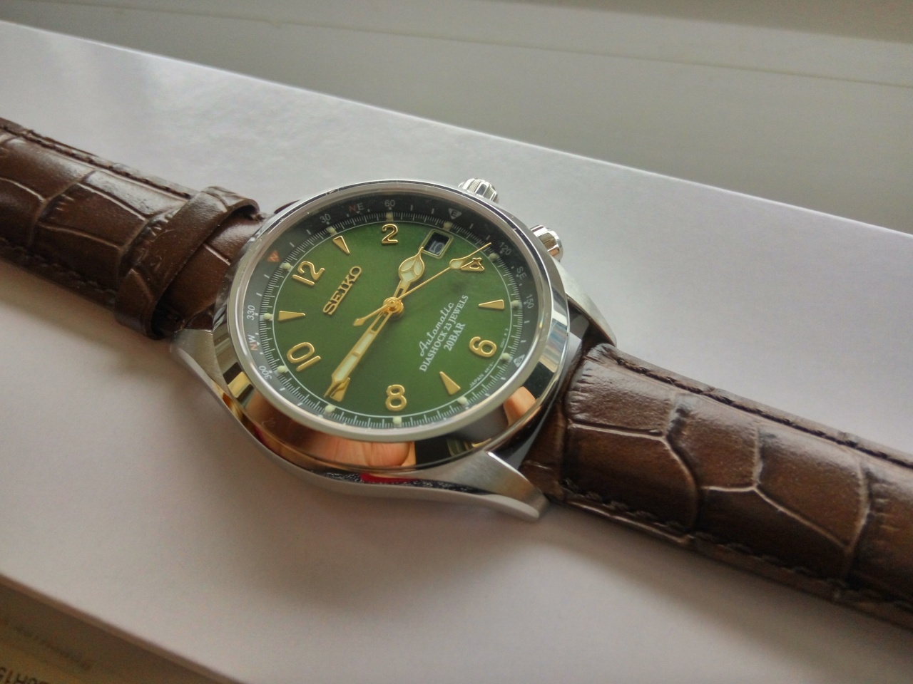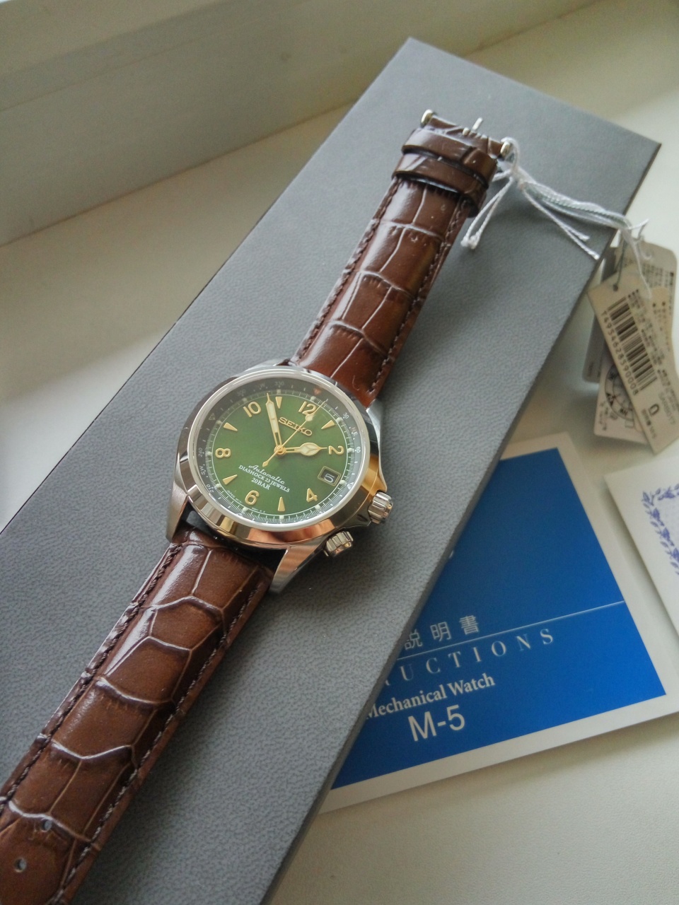 В продаже знаменитые зеленые Seiko Альпинист sarb 017. Данные часы сделаны для внутреннего рынка Японии - JDM, поэтому качество отделки безупречное для данной ценовой категории. Потрясающий зеленый циферблат и отличный надежный механизм уже давно сделали эти часы настоящей легендой. Часы совершенно новые, соответственно все документы и коробки присутствуют.