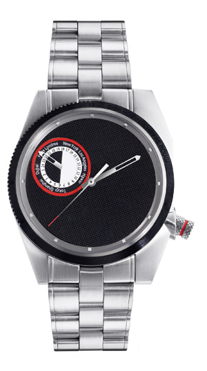 Особенностью является наличие на черном циферблате вращающегося "сателлита", на котором размещена часовая стрелка, указатели восьми часовых зон и дня/ночи. Минутная и секундная стрелки - центральные.