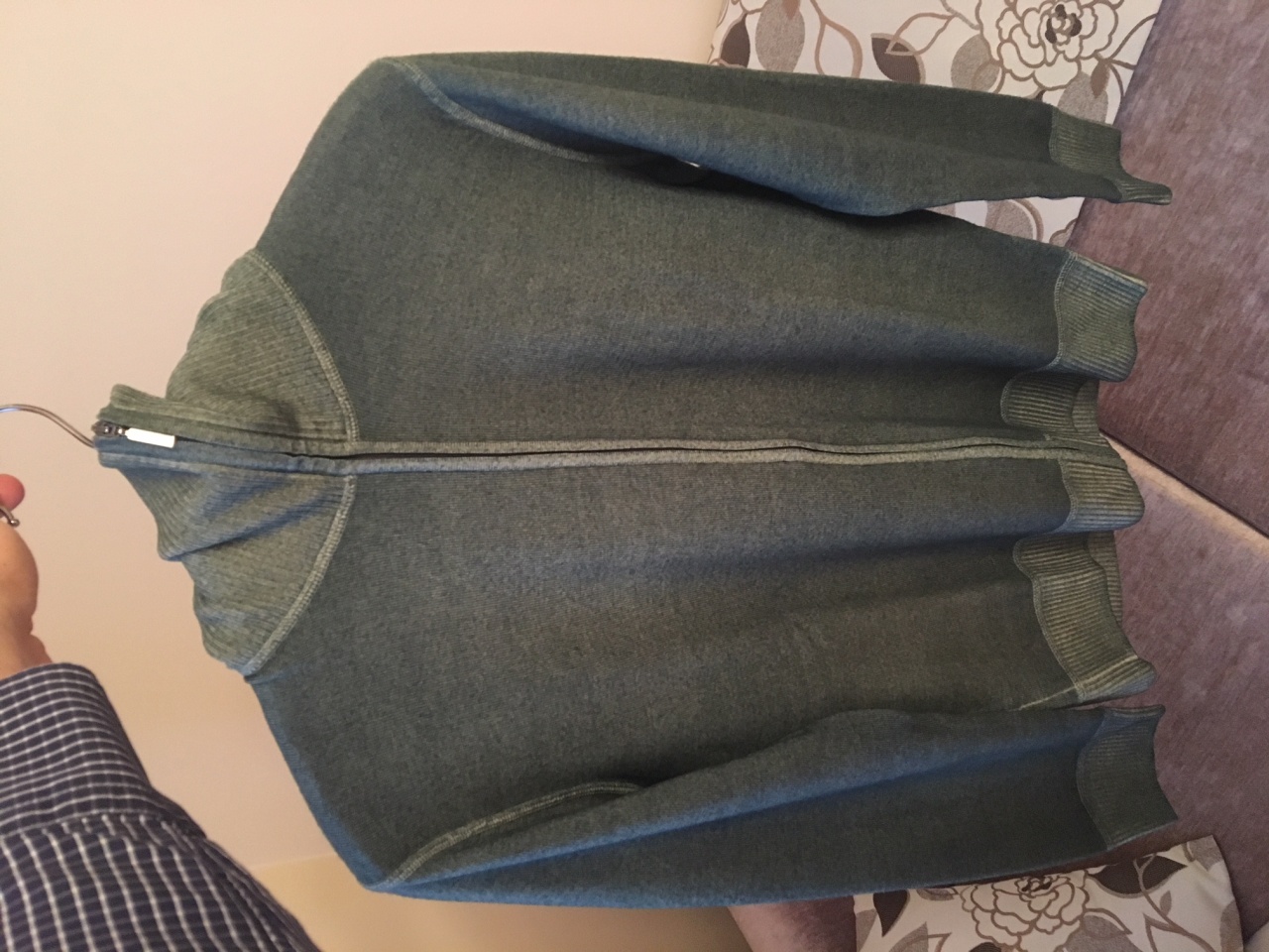 Предлагаю к продаже новый кардиган от Cruciani. С бирками, состояние лучше, чем в магазине. Цвет по номенклатуре Cruciani - зелёный. Это один из самых эффектных в их палитре (наравне с цветом морской волны), в жизни гораздо лучше, чем на фото. Нежнейшая шерсть. Full Zip. Эффект меланжа на манжетах, резинке пояса и вороте это +50 к общему виду. Нашивки из нежнейшей замши на локтях от истирания, для перфекциониста то, что нужно. Плотно закрывает шею при необходимости (для тех, кто не любит шарфы - идеальнейший вариант). Неубиваемая фурнитура. Все, кто знаком с качеством этой мануфактуры меня поймёт. Как раз на это время года. На бирке 50, но в реале 48. Твёрдая «М». На спортивную, подтянутую фигуру. Обращу Ваше внимание, что подобная вещь в ЦУМe стоит 50.000 рублей. Так что спешите, реально вкусный лот. Качество уровня Cortigiani, Bilancioni, Svevo, Malo и т.д. Длина спины с воротником - 78. Плечи - 50. Длина рукава - 63. Между подмышками - 51. Моя цена - 12500 рублей.
