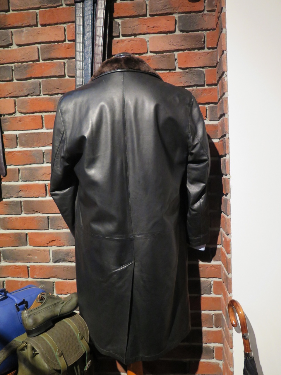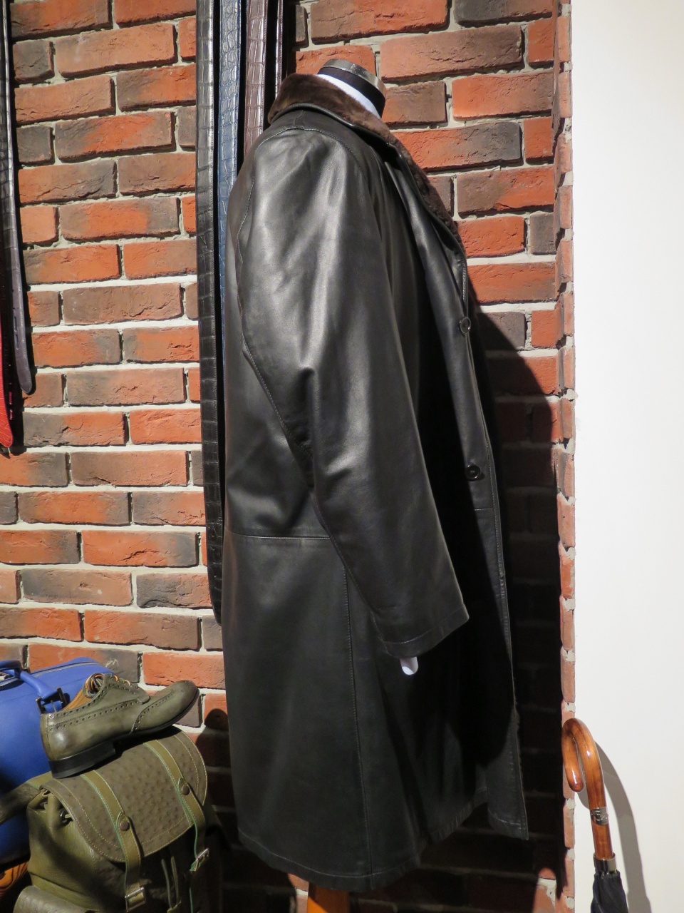 Пальто изготовлено из 100% кожи высочайшего качества выделки и застегивается на три пуговицы из буйволиного рога.