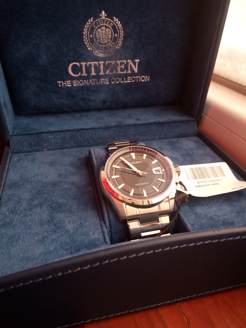 Предлагаю шикарные CITIZEN SIGNATURE COLLECTION GRAND CLASSIC NB0040-58E. Часы в состоянии новых, не носились, только примерялись на руку. Браслет не уменьшался. Никаких видимых царапин, потертостей и иных косяков нет. Коробка в идеале. Бирка на часах, а вот документов нет, но там собственно и была только карточка гарантии, инструкции в интеренете.