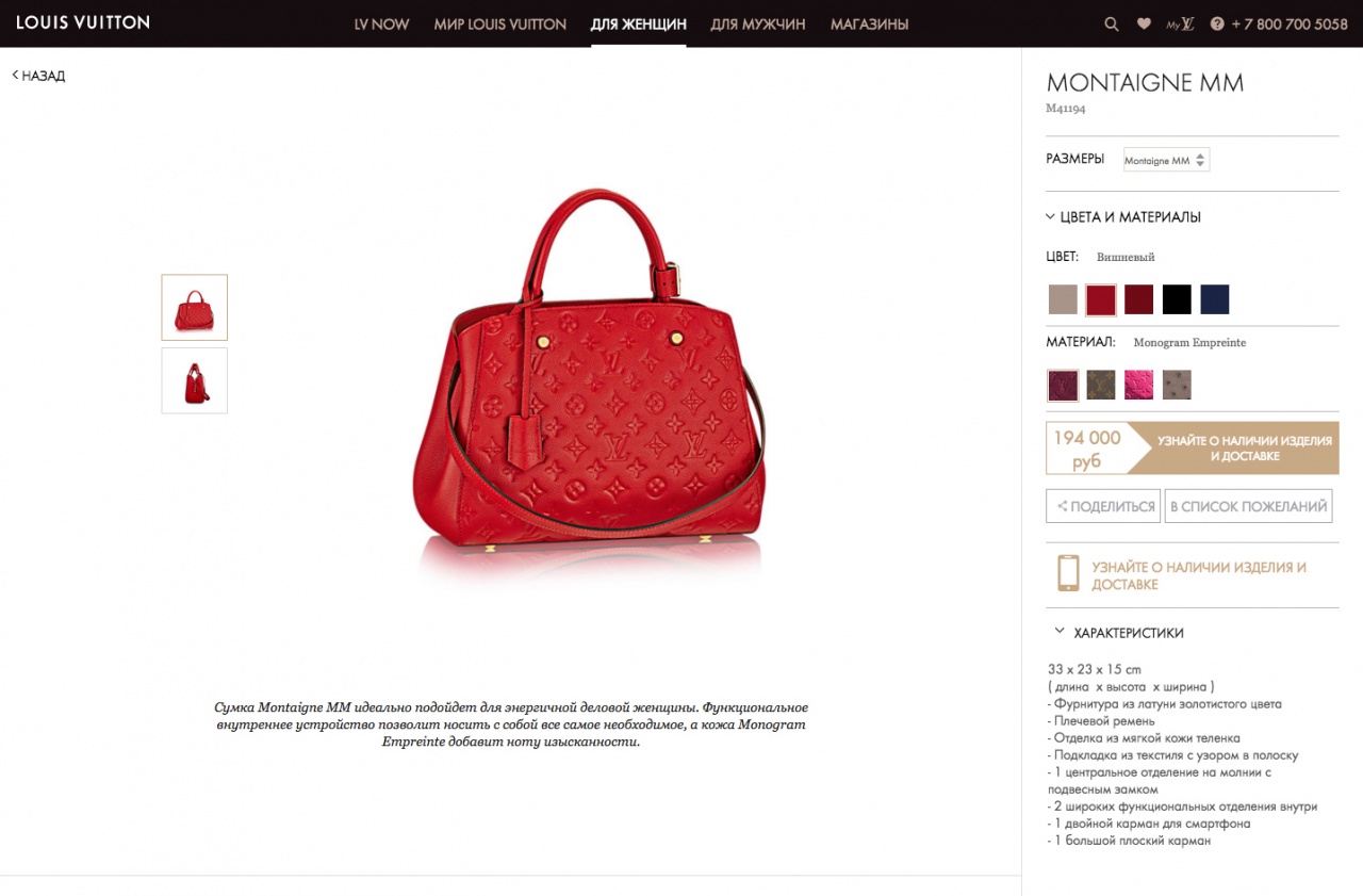 "Сумка Montaigne ММ идеально подойдет для энергичной деловой женщины. Функциональное внутреннее устройство позволит носить с собой все самое необходимое, а кожа Monogram Empreinte добавит ноту изысканности."