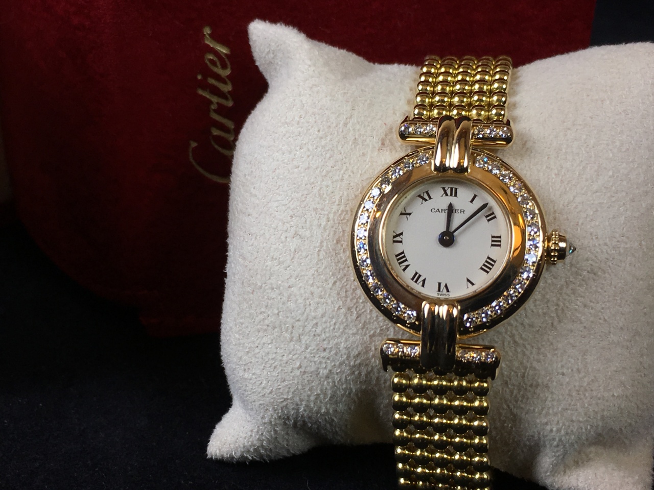 Cartier Colisee Ladies 18k Yellow Gold Diamond Bezel Boule Bracelet