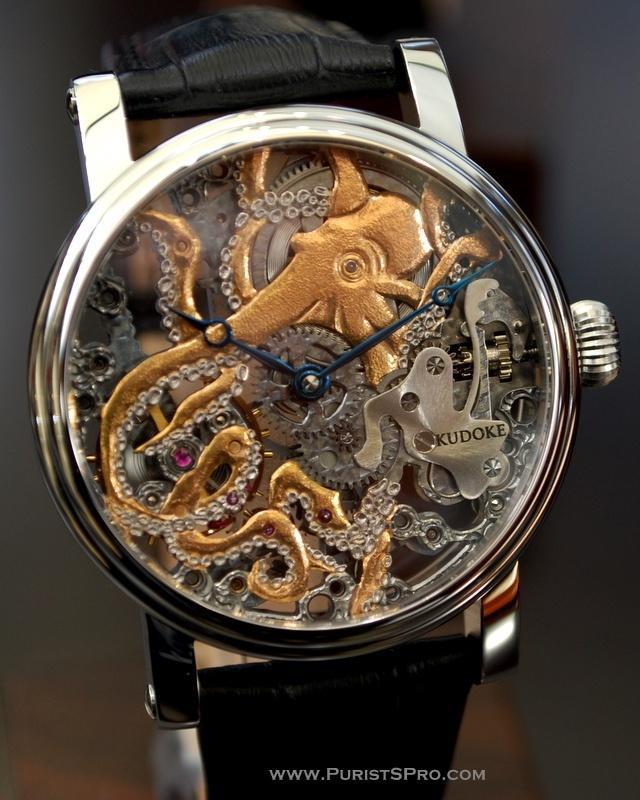 Но в интернете я наткнулся на любопытные часы Kudoke, отображающие тематику подводного мира, а именно осьминога. Сделанные в стиле скелетона. Концепция часов понравилась.