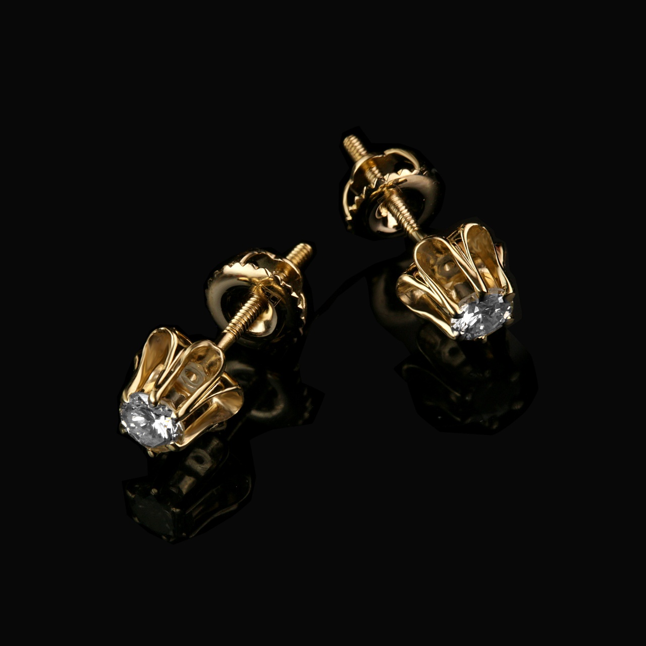 Серьги-пуссеты из желтого золота с бриллиантами 0,38 карат
