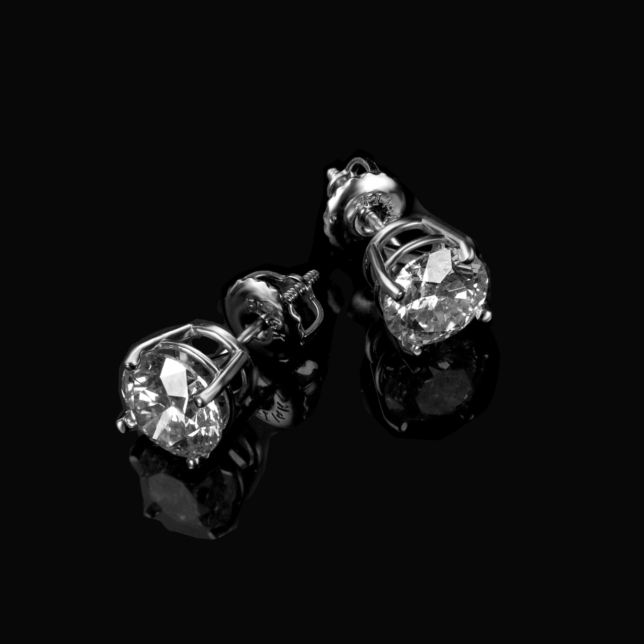 Серьги-пуссеты из белого золота с бриллиантами 2,05 карат