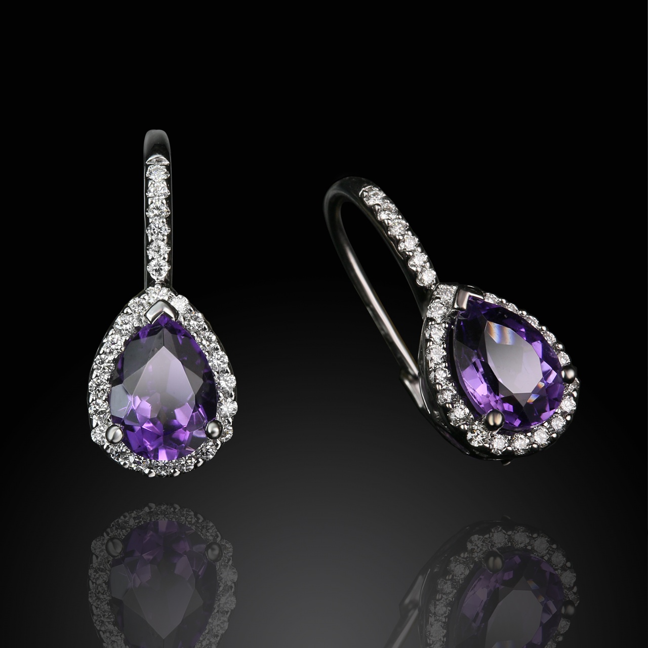 Серьги из белого золота с аметистами 2 карата и бриллиантами 0,3 карат