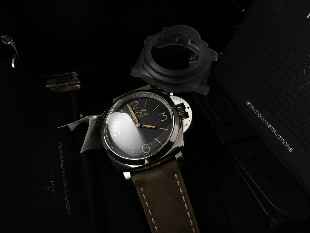 Механизм: Механический с ручным заводом, калибр P.3000, производство Panerai, 16½ линий, толщина 5,3 мм, 21 камень, баланс из сплава Glucydur®, 21 600 полуколебаний/час. Противоударное устройство Incabloc®. Запас хода 3 дня, два заводных барабана. 164 детали.