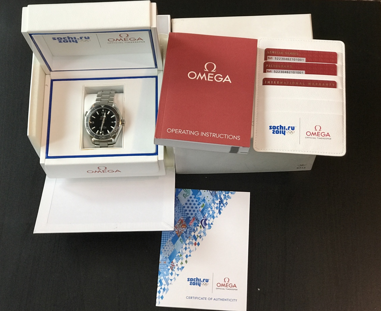 Вынужден расстаться с любимой коллекционной моделью Omega planet ocean Sochi 2014, т.к уже несколько лет просто лежат в коробочке, носил от силы 10 раз, часы в состоянии близко к новым, никаких полировок не проводилось. Покупал в бутике Турбийон на Петровке.