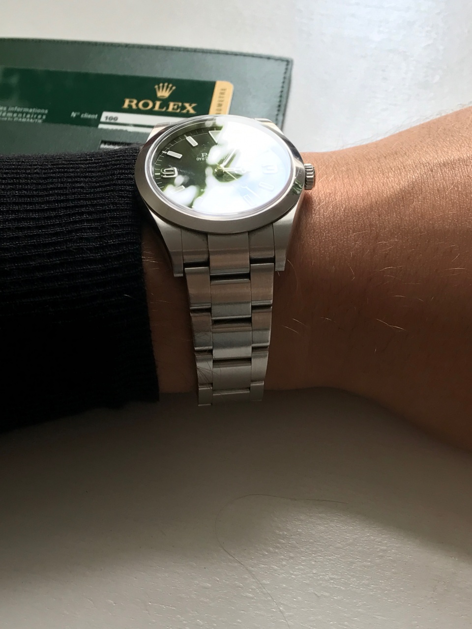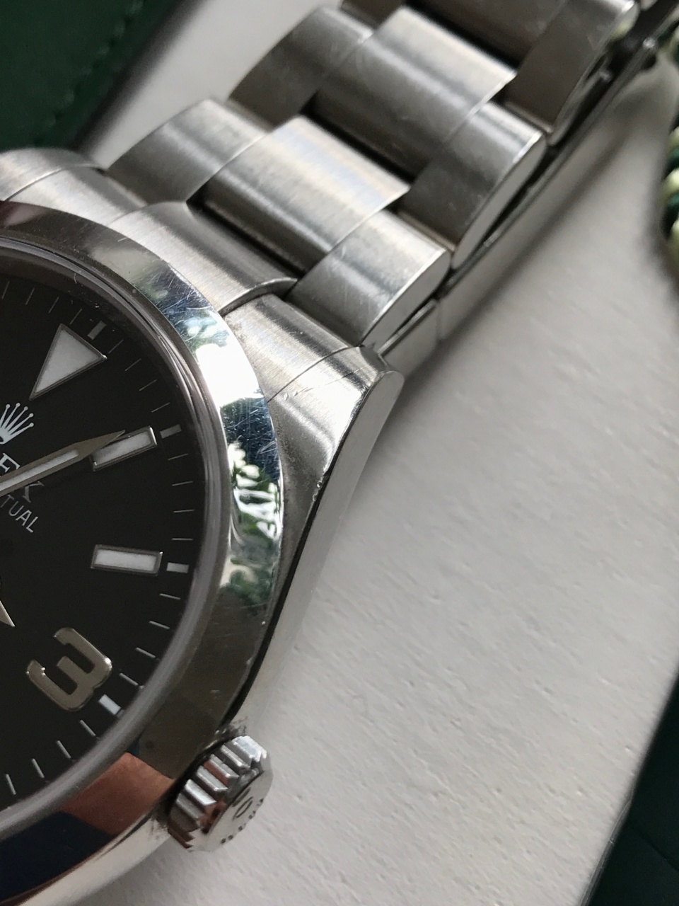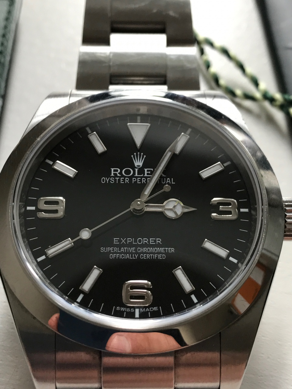 Продам Rolex Explorer I ref. 214270 на браслете, в отличном состоянии. Мелкие еле видимые царапки на полированной поверхности, подтверждающие недолгую, бережную эксплуатацию.