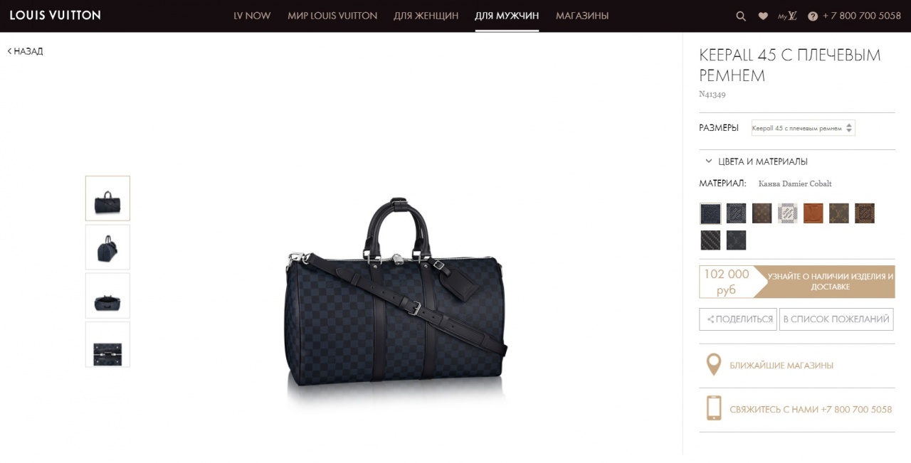 - Материал: Damier Cobalt, натуральная кожа;