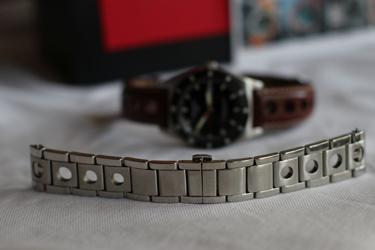 Спортивная классика от Tissot. На мой взгляд, самая удачная модель, дублирующая первые PRS516, выпущенные в 1965г в честь автогонок NASCAR. Прозрачная задняя крышка (напоминает рулевое колесо), механизм ETA 2836-2 с автоподзаводом, точность 10-15 сек/сут. Сапфировое стекло (ни одной царапины), корпус из стали с PVD-покрытием. Стрелки и риски с фосфором.