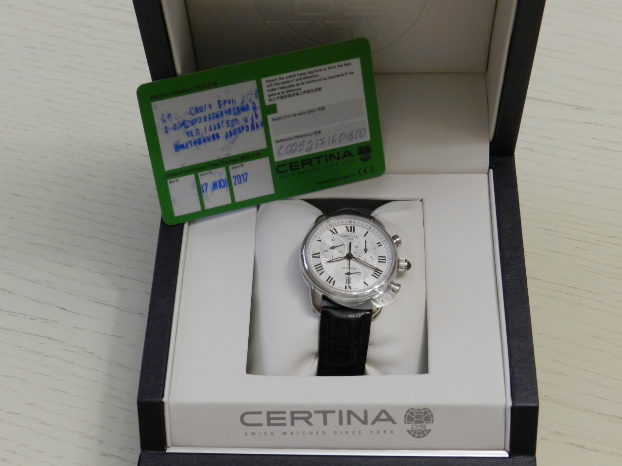Полная заводская комплектация CERTINA: оригинальные часы, фирменная коробка, инструкция, сервисная книжка.