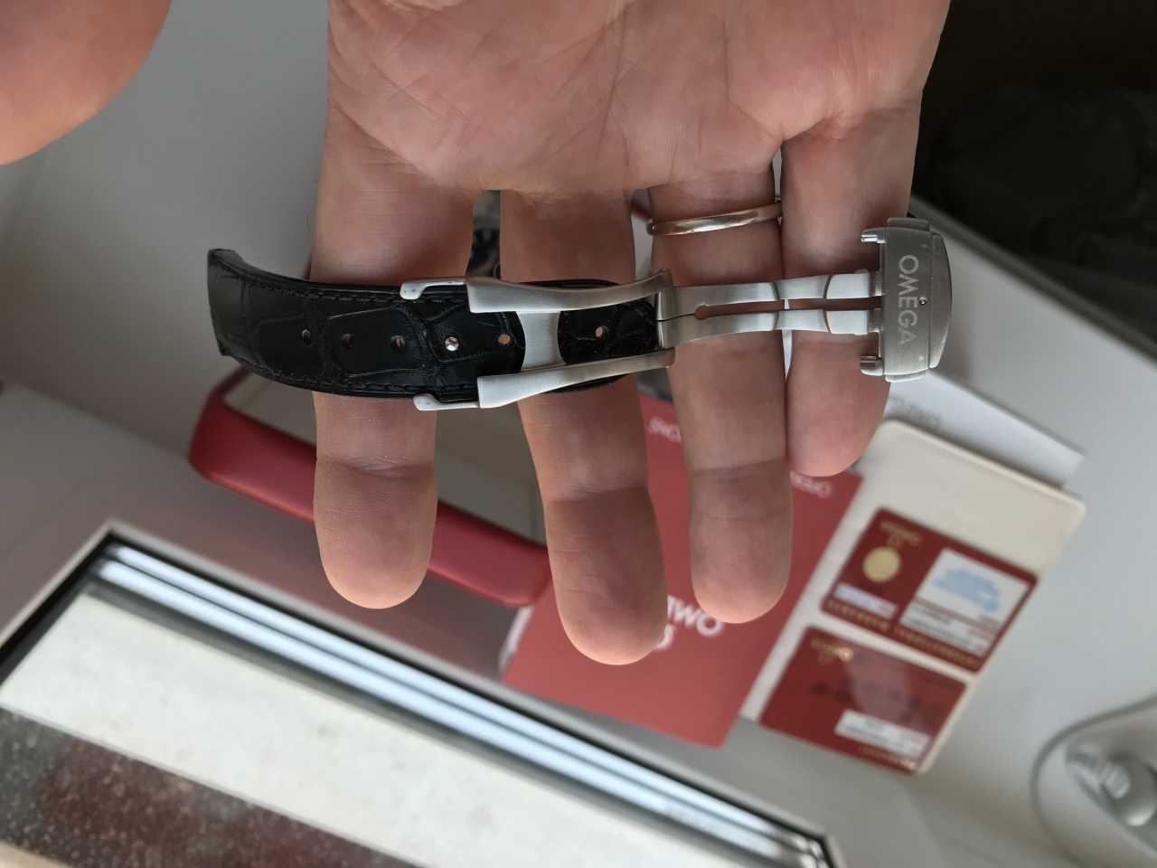 Часы на полном комплекте: родной браслет со всеми звеньями, коробка в коробке, сертификаты и книжка. В дополнение для зимнего варианта эксплуатации был приобретен оригинальный темно-синий крокодил на оригинальной клипсе.